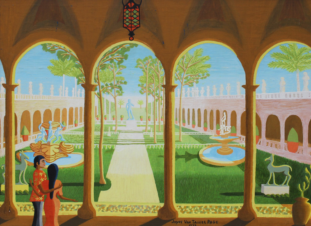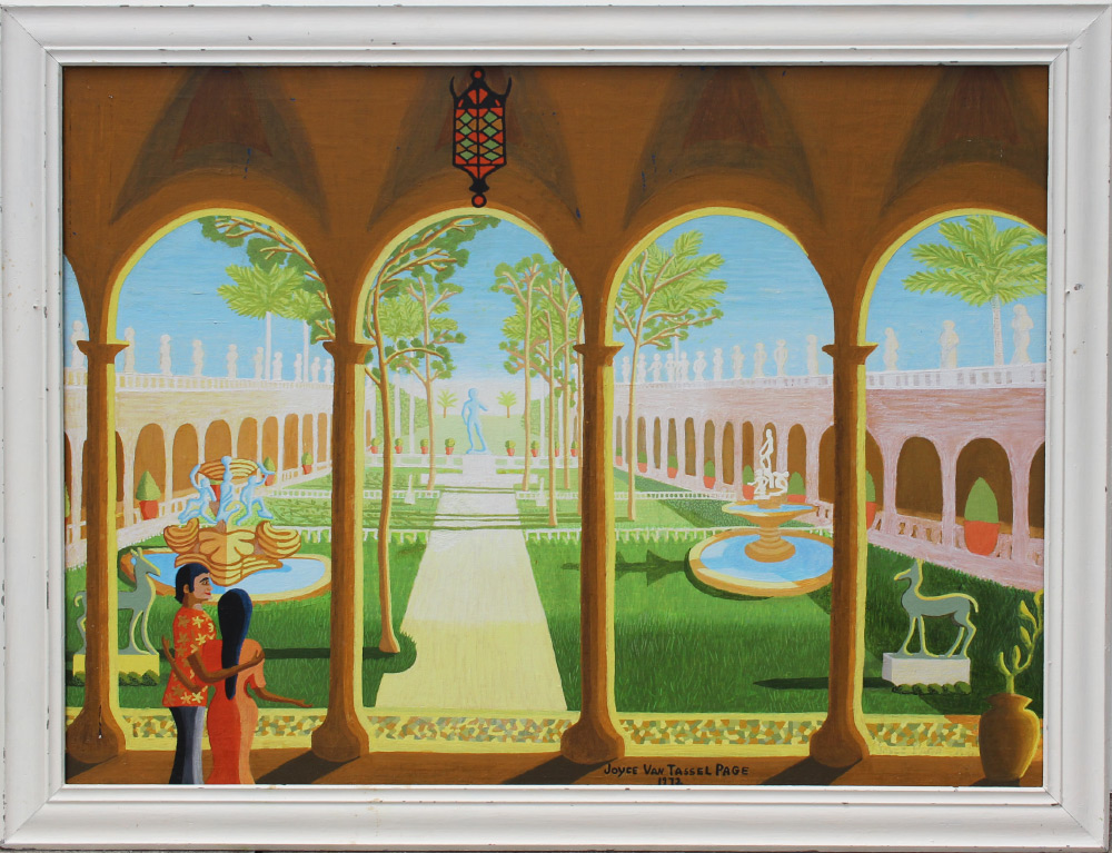 PAGE, Joyce Van Tassel, (American, 20th C): Ringling Museum Courtyard, Oil/Canvas, 30'' x 40'', signed lower right and dated 1972, painted frame, 35'' 44.5''. From the estate of the undiscovered artist Joyce Van Tassel Page.