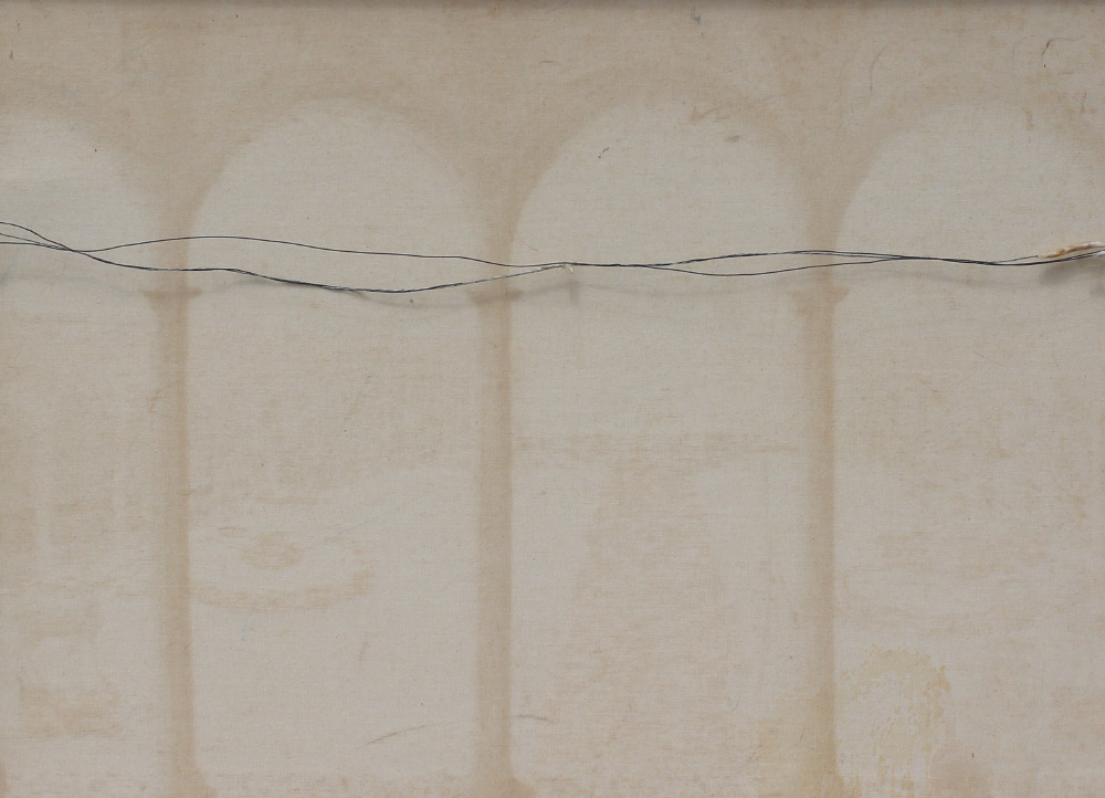 CONDITION: Frame shows wear, several scattered abrasions with paint loss to the canvas, sold as is.