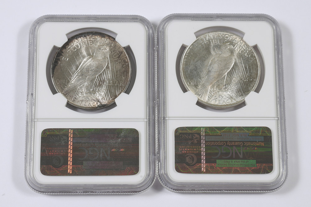 2 1923 MS66 PEACE DOLLARS NGC: Slabbed and graded MS66 by NGC.