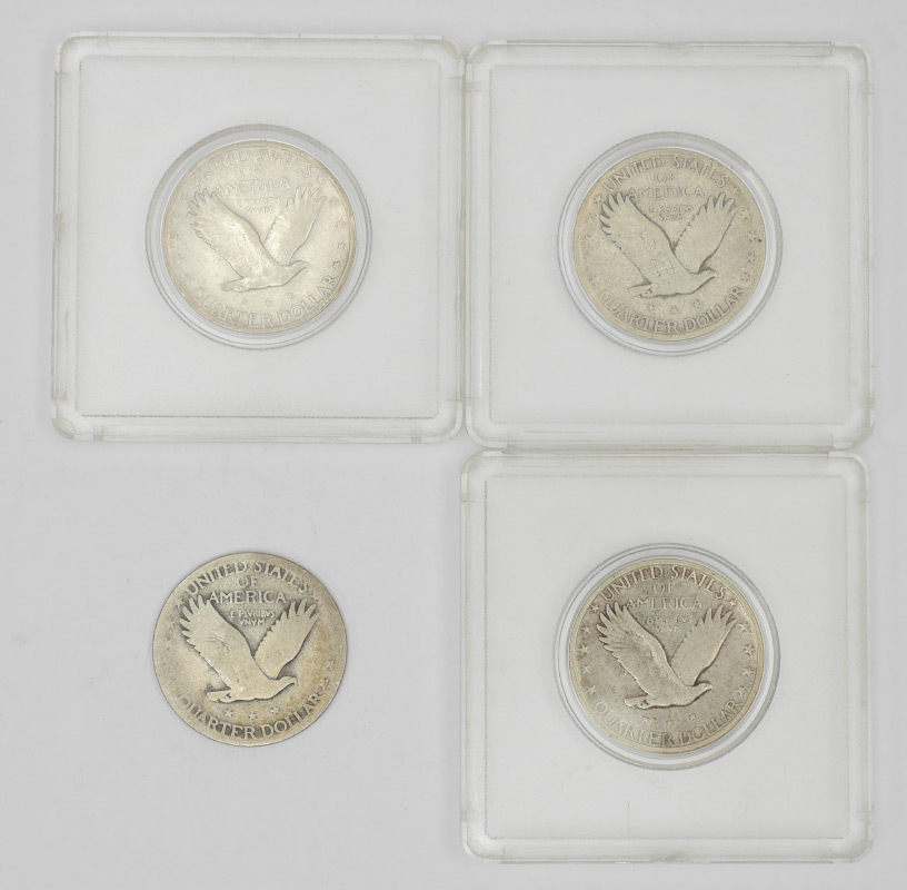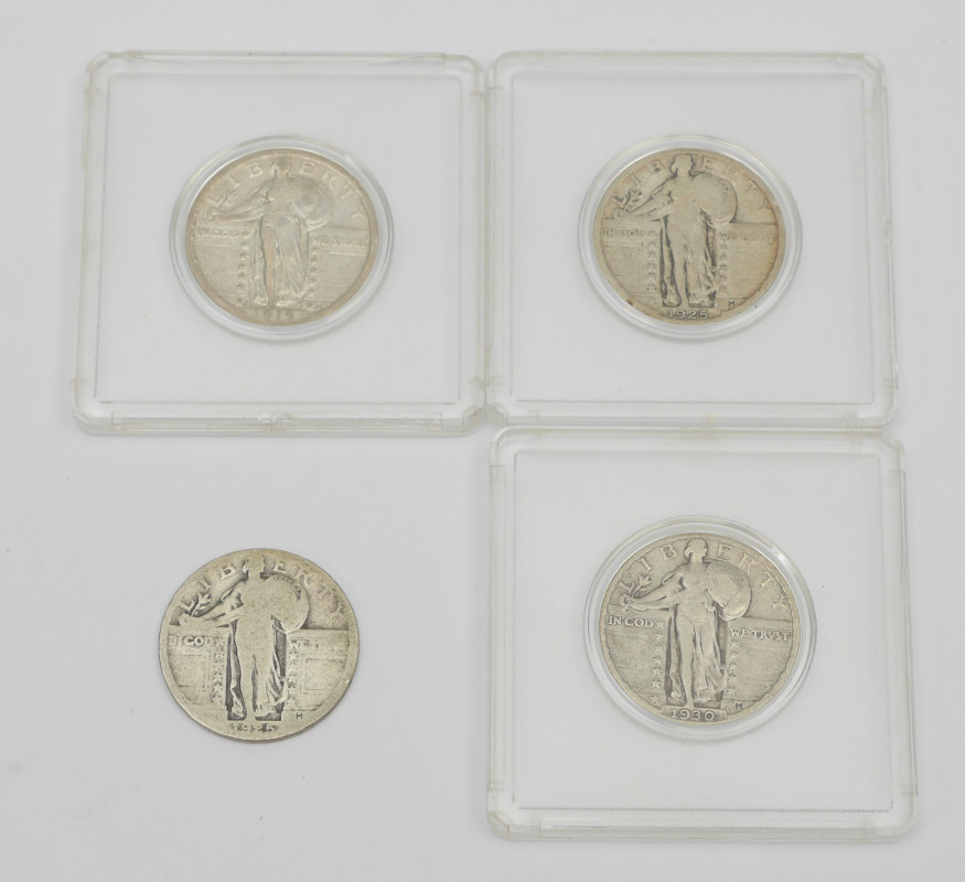 1919S STANDING LIBERTY QUARTER: 4 Standing Liberty quarters total to include 1919S, two 1925, 1930. Ungraded.