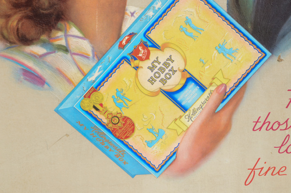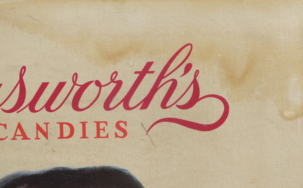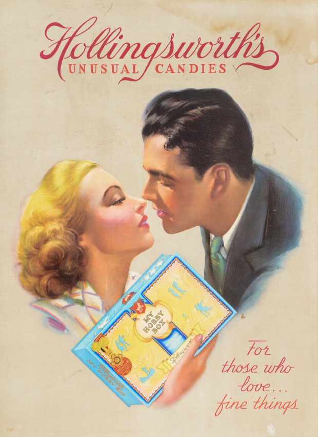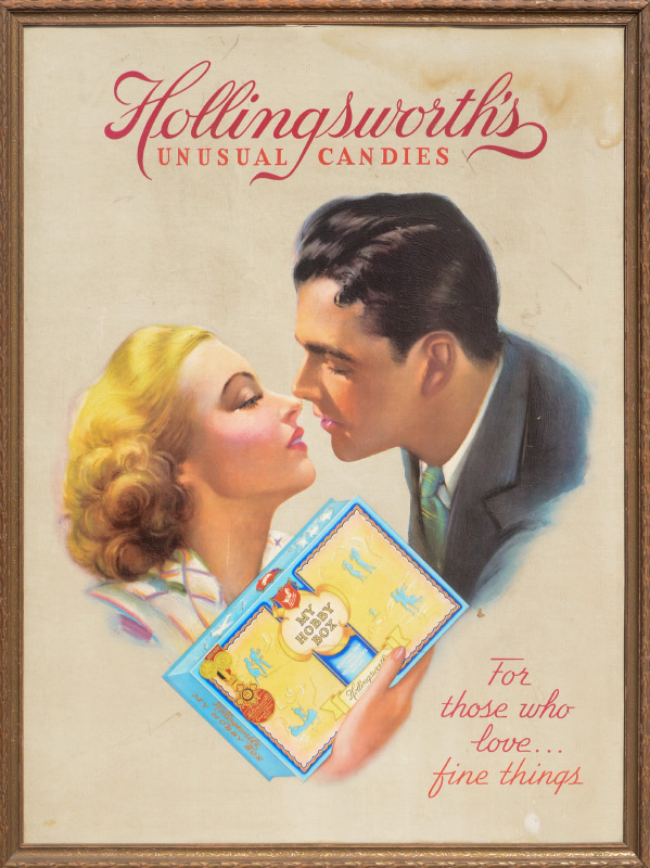 HOLLINGSWORTH'S UNUSUAL CANDIES POSTER: Enhanced offset lithograph print with embossed candy box, sight size 39 3/4'' h. x 29 1/2'', framed 42 1/2'' x 32 1/4''.