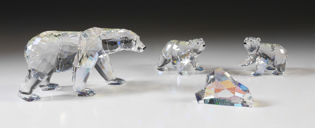 SWAROVSKI CRYSTAL SCS EXCLUSIVE 2011 POLAR BEAR SIKU: Mother and two cubs. Anton Hirzinger designer. Mom approx. 3.25'' h. Cubs approx. 2'' h. With Iceberg name plaque.