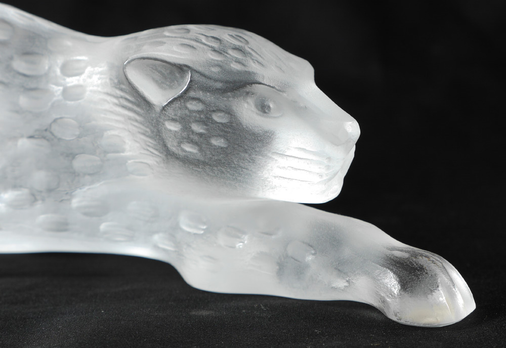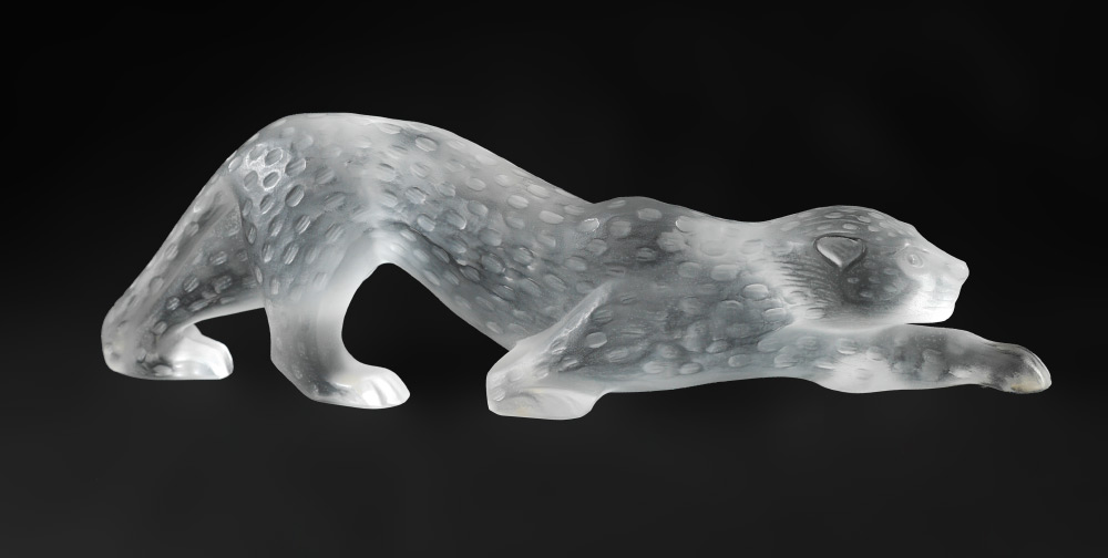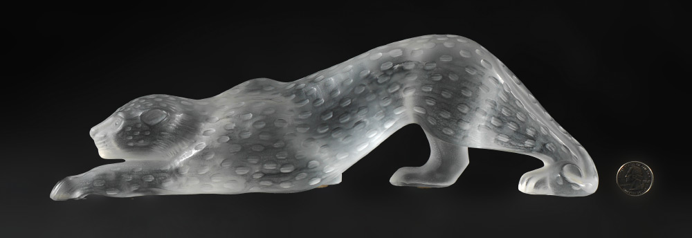 LALIQUE ZEILA PANTHER CRYSTAL FIGURE: Molded and frosted figure of a panther, engraved Lalique France on base of one paw. Overall measures 4 1/4'' h. x 14 1/4'' x 2 1/2''.