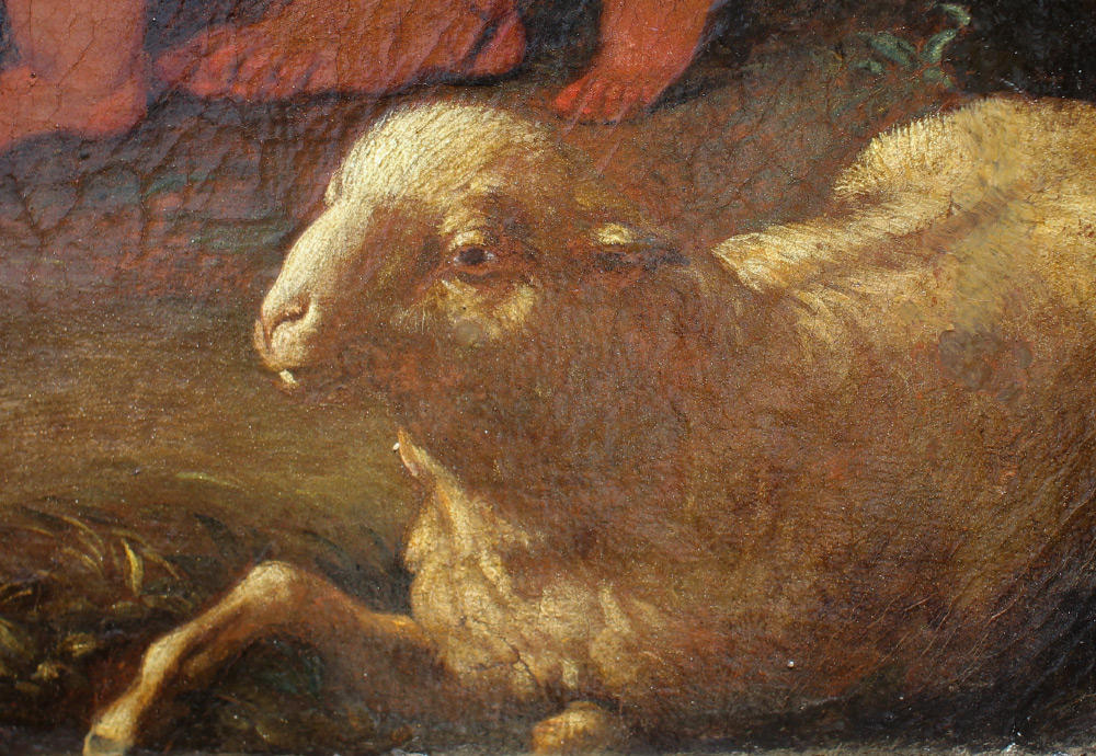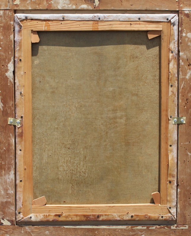 CONDITION: Scattered craquelure, reline, stretcher bar wear, loss of paint and scattered inpaint, frame has wear, sold as is.