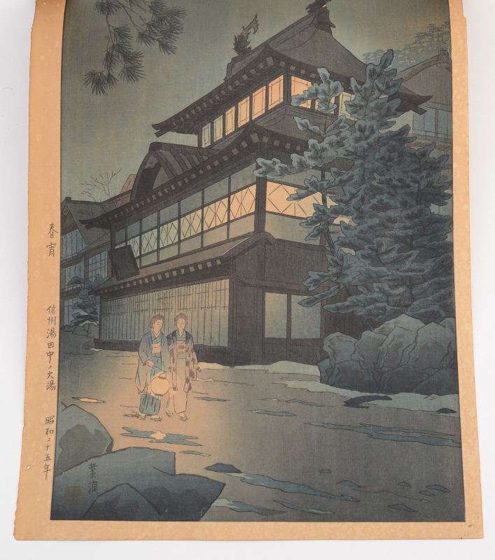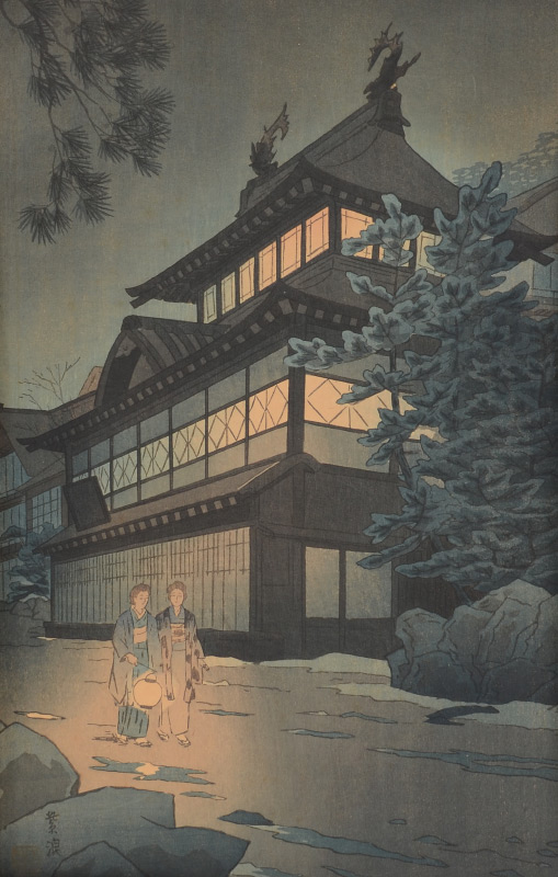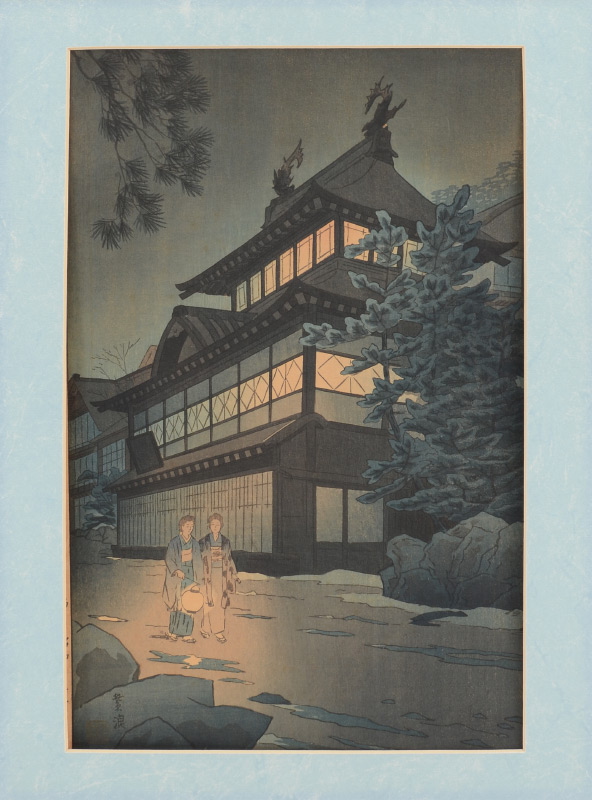 SHIRO, Kasamatsu, (Japanese, 1898-1981): Shrine at Night, Woodblock Print, 15.5'' x 10.75'', framed, 20'' x 16''.