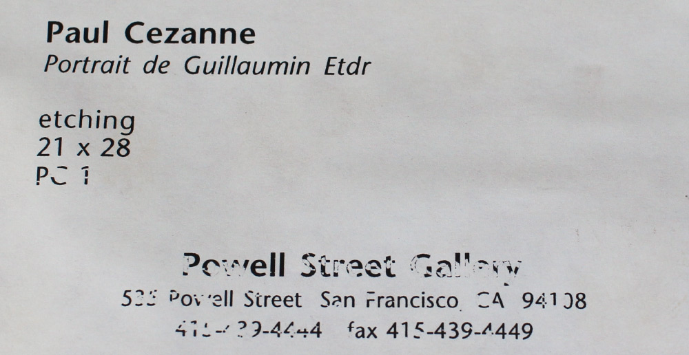 CEZANNE, Paul, (French, 1839-1906): Portrait de Guillaumin, Etching, 7.25'' x 5'', fine contemporary frame 21'' x 19.5''. Cezanne is known as the artist that bridged the gap between the late 19th century impressionism and the early 20th century cubism. He influenced both Henri Matisse and Pablo Picasso with his use of color and composition that is now world renown.