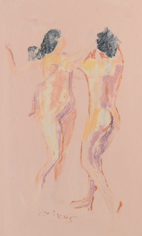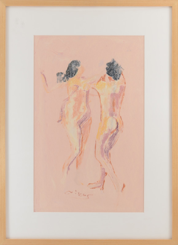 KYPRAIOS, Nikos, (Greek, 1944-): Nudes Dancing, Mixed Media Artwork, signed lower right, sight size 20.5'' x 13'', framed 29'' x 21''. Through his travels, Kypraios has combined two cultures vividly in his work. After studying art in Athens, Greece, he moved to Australia in 1972 where he fell in love with the strength and vitality of Australian landscapes and combined well known mythology and ambience of Greece as a Nation. As a master painter, Kypraios has been shown in several exhibits around the world, including Singapore, various places in Asia, Australia as well as the National Gallery of Athens and the National Gallery of Australia.