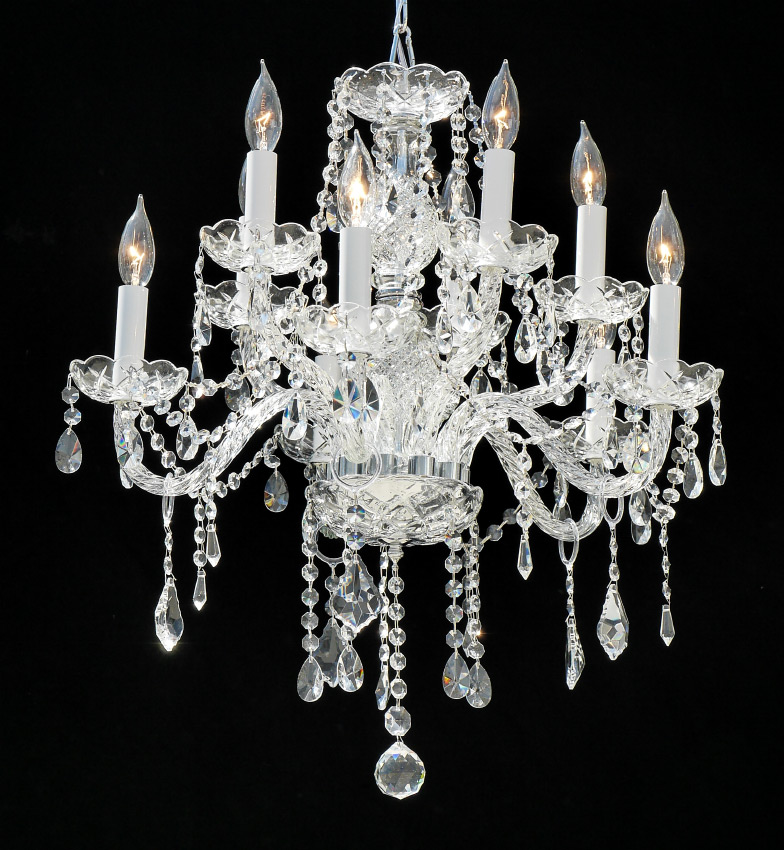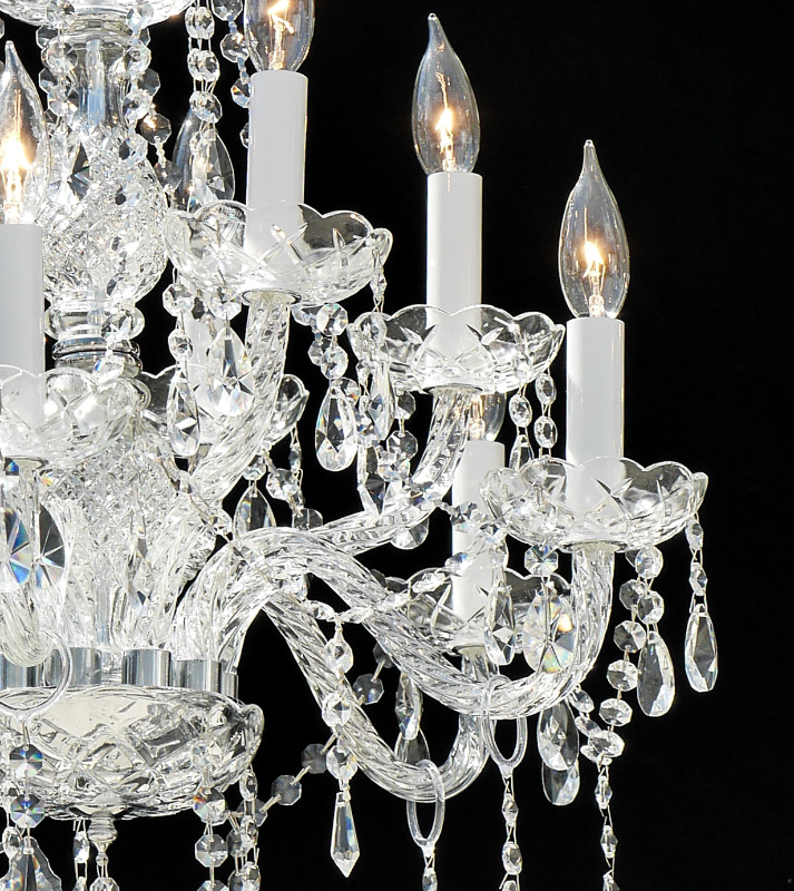 ITALIAN STYLE 10 LIGHT CRYSTAL CHANDELIER: 10 lights on 2 levels, crystal garland, prisms, and drops, chrome frame. Overall measures approx. 16'' h. x 22'' dia.