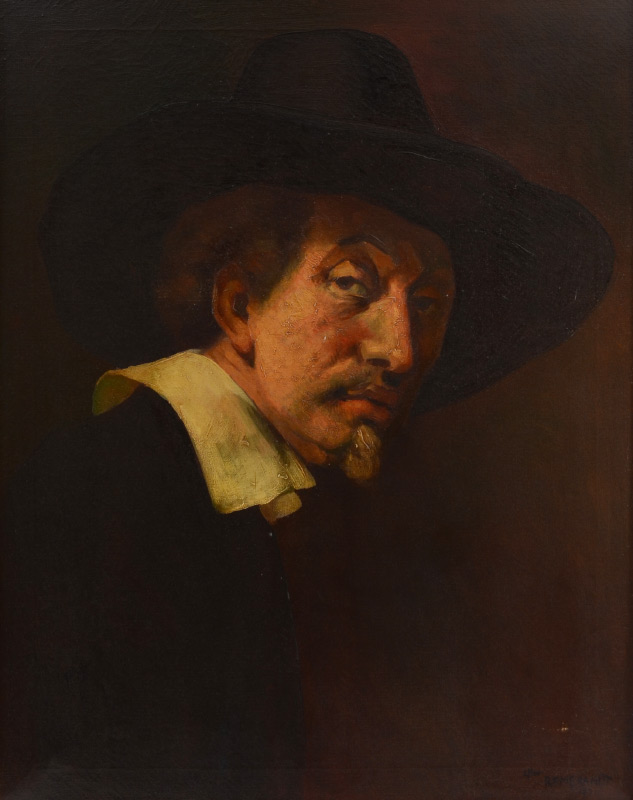 GOOD PORTRAIT PAINTING AFTER REMBRANDT : Oil/Canvas, 30'' x 24'', gilded frame 36'' x 29.5''.