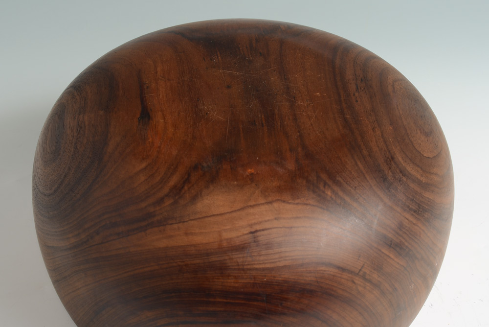 LARGE HAWAIIAN TURNED KOA WOOD POI BOWL: Unsigned, nicely turned, measure 7 1/2'' h. x 14''.