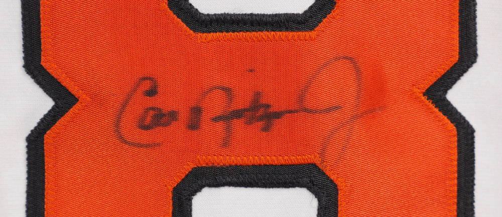 CAL RIPKEN SIGNED BASEBALL JERSEY: Signed in Sharpie on a home Baltimore Orioles Rawlings size 42 jersey. Sold with COA from Sports Investments Inc.