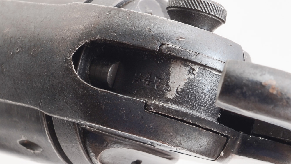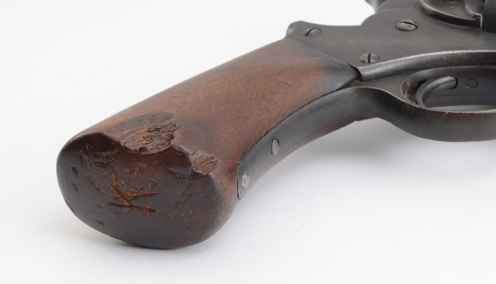 CONDITION: Typical dings and wear to frame, chips and scratches to grip. BURCHARD GALLERIES DOES NOT ENDORSE THE FIRING OF ANY ANTIQUE FIREARM.