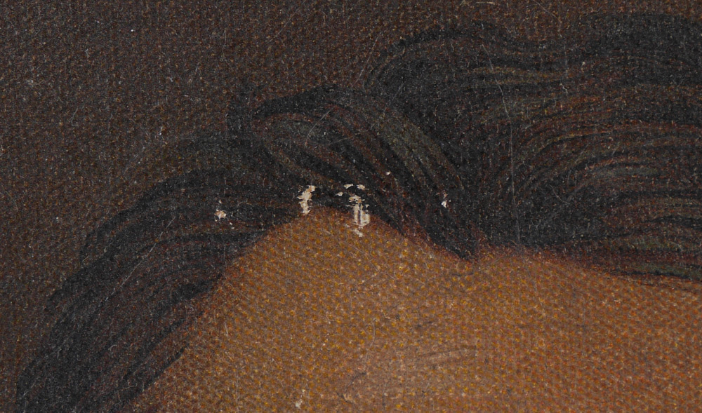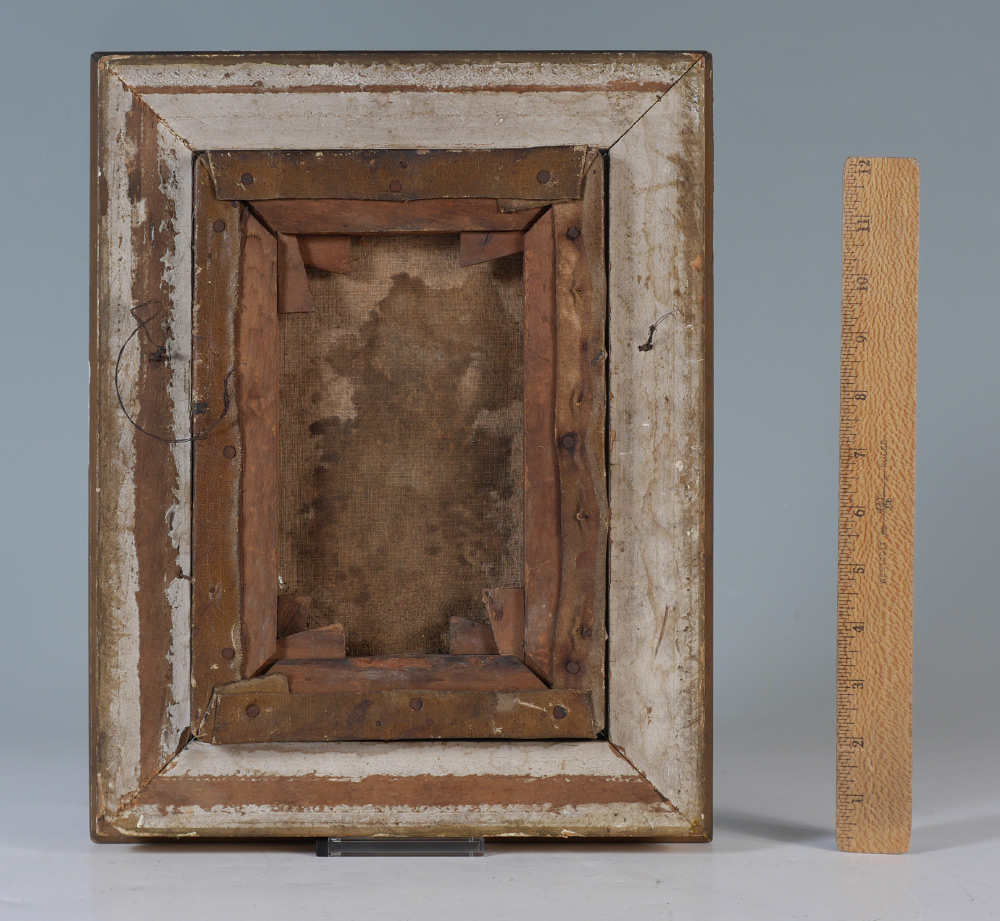 CONDITION: Craquelure and flaking to print, chips to frame, sold as-is.