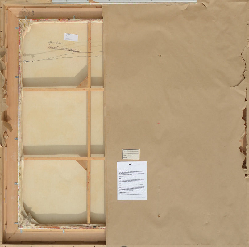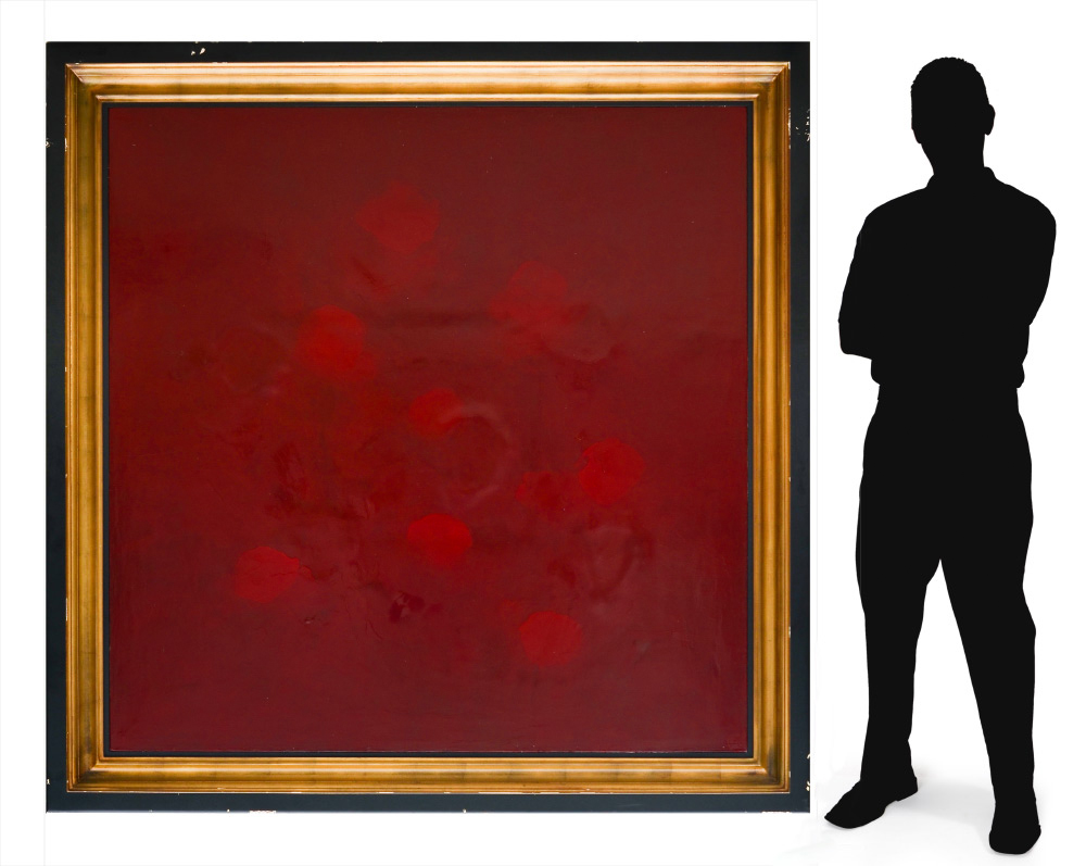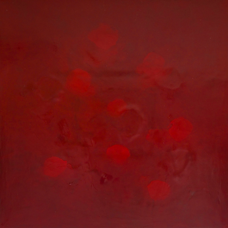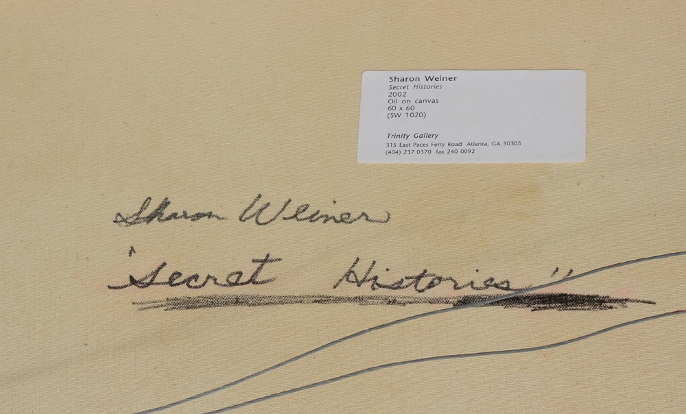 WEINER, Sharon, (American, 20th C.): ''Secret Histories'', Oil/Canvas, 60'' x 60'', signed and titled verso, black frame 71.5'' x 71.5''. Using the unusual technique of pouring acrylic paint in layers and sanding in between, Weiner has made a name for herself in the transcendental abstract art world. With a Masters of Fine Arts from Claremont Graduate University, she went on to receive a Distinctive Merit Award from the San Diego Museum of Art,