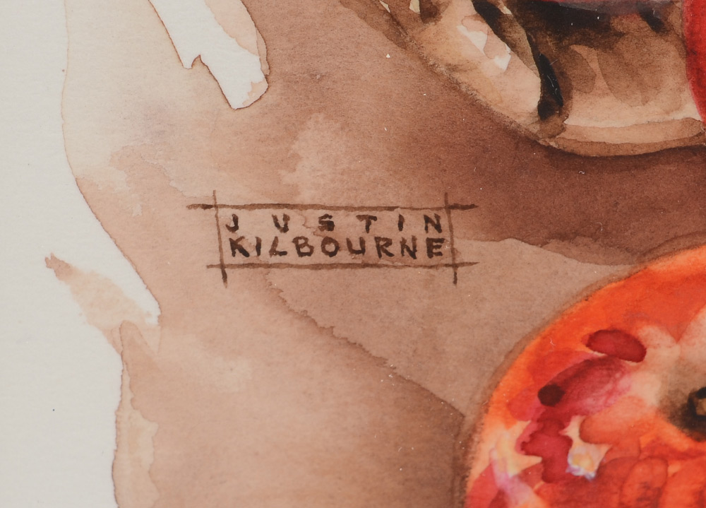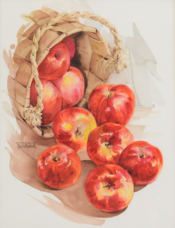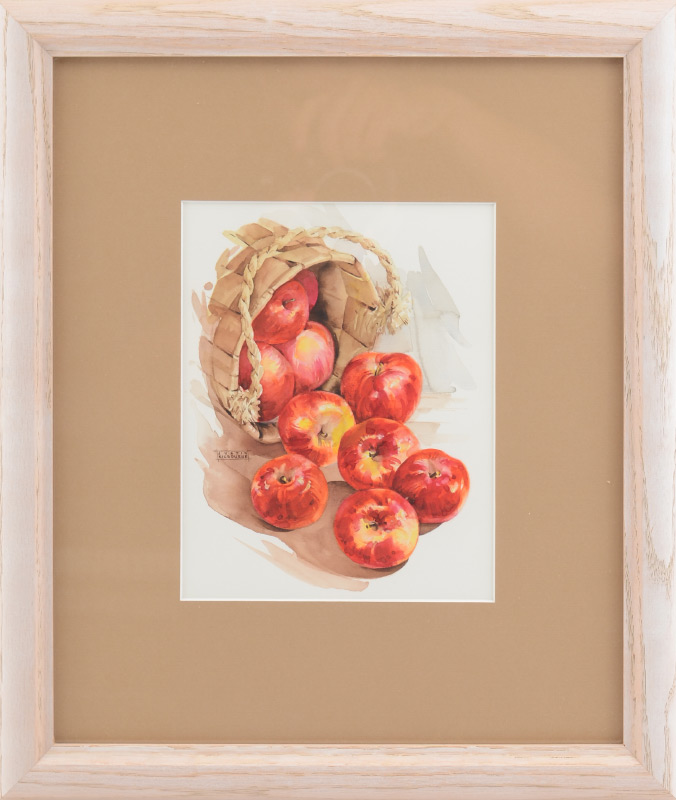 KILBOURNE, Justin, (American, 19-20th C): Basket of Apples, Watercolor, sight size 7.75'' x 6.25'', framed 16'' x 13.75''.