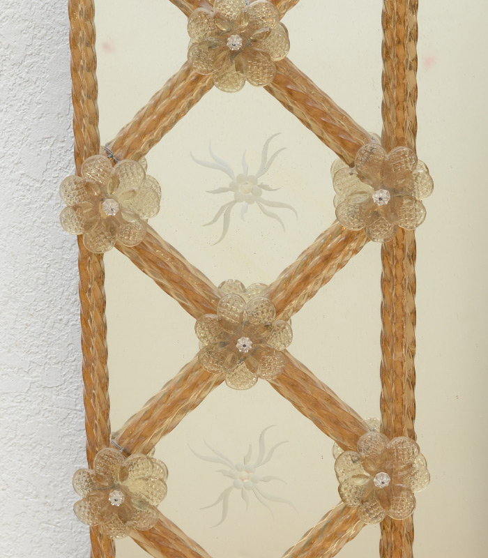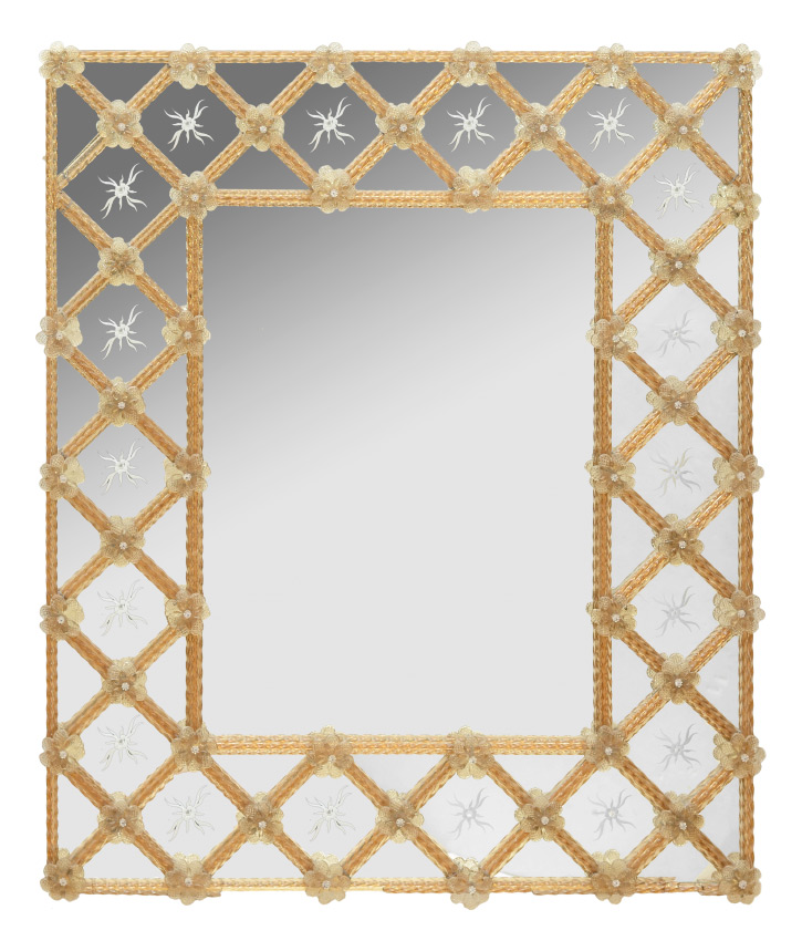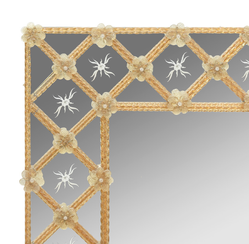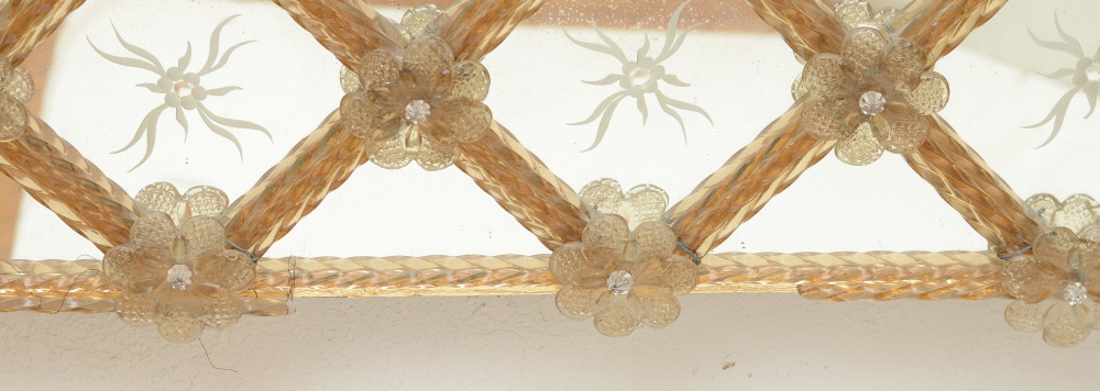 RECTANGULAR CONTEMPORARY VENETIAN GLASS MIRROR: With applied geometric rope twist borders and floral rosettes. Overall measures 48 1/4'' h. x 40 1/2'' x 1 3/4''.