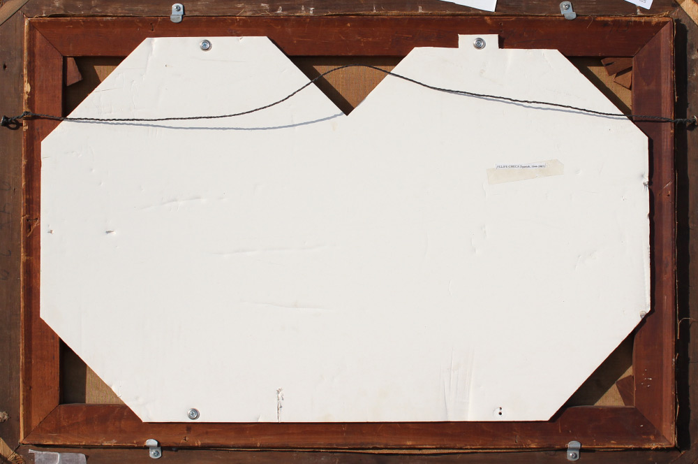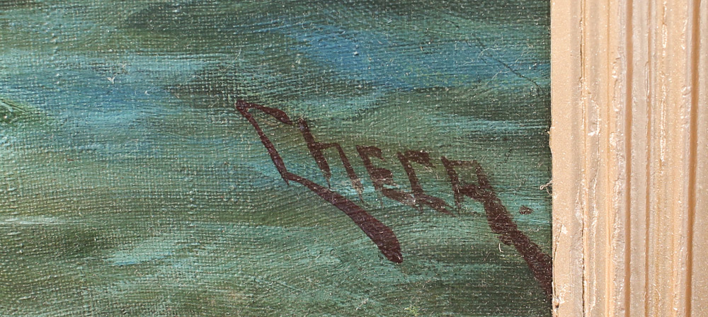 CONDITION: Scattered bits of inpaint, patch in lower right corner, frame has been overpainted, sold as is.