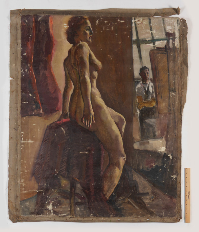 ALLEN, Arnold, (American,20th C.): Nude Posing in the Studio, Oil/Unstretched Canvas, 43.5'' x 35.5'', signed upper right.