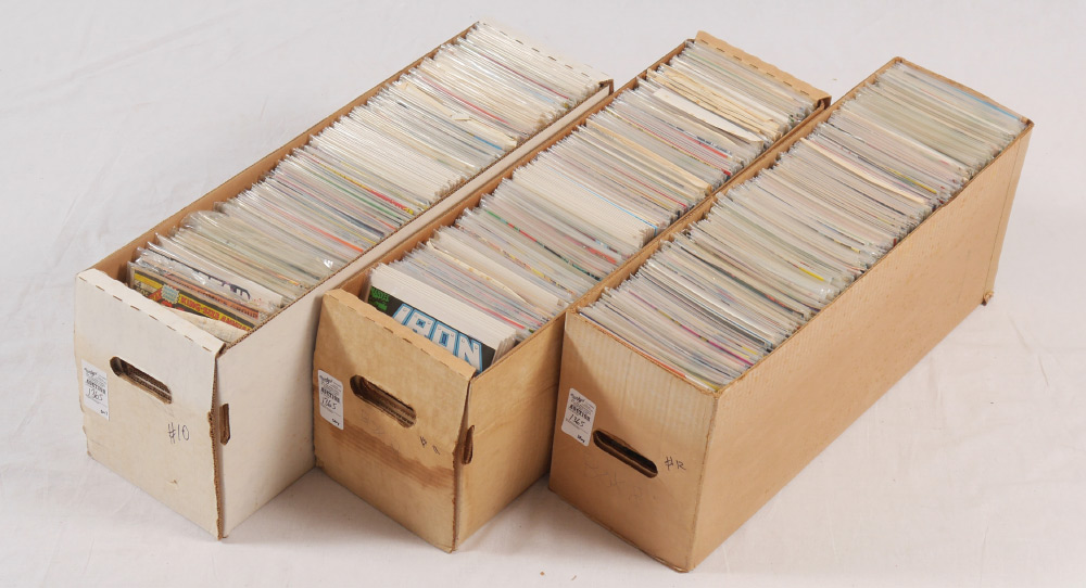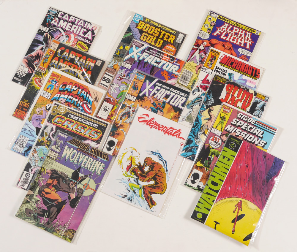 3 LONG BOXES OF ASSORTED VINTAGE COMIC BOOKS: Highlights of boxes to include Box 1) Near complete run Captain America 276-410, more earlier plus Annuals including #8; Crisis on Infinite Earth 1-12; Hawk & Dove 1-28; Marvel Comics Presents 1-93. Box 2) near complete run X-Factor 1-84 including #24 first appearance Archangel, #6 first appearance Apocalypse; Booster Gold 1-25, Elementals, Ambush Bug and more. Box 3) Near complete run Alpha flight 2-100; near complete Micronauts 13-59; Grimjack 1-81; G.I. Joe Special Mission 1-28; full set Watchmen; All Star Squadron 1-67.