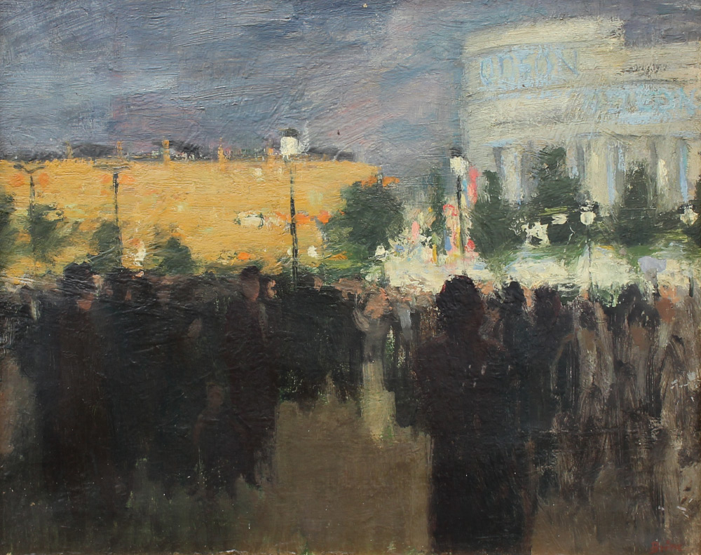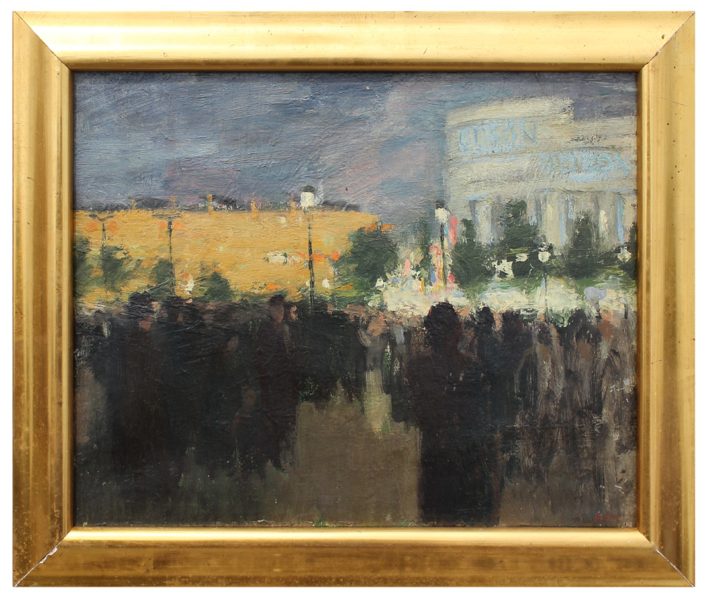 GOOD ILLEGIBLY SIGNED PARISIAN NIGHTLIFE PAINTING: Crowded Streets in Paris at Night, Oil/Canvas, 16'' x 20'', signed lower right ''Brine?'', contemporary frame 19.5'' x 23.5''.