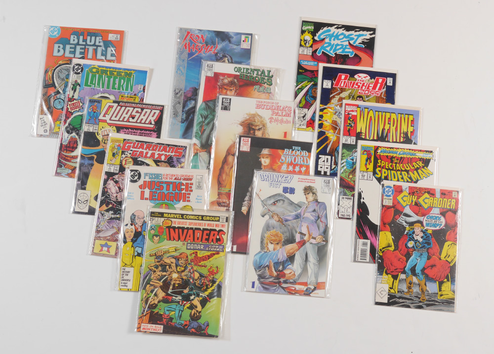 3 LONG BOXES OF ASSORTED VINTAGE COMIC BOOKS: Highlights of boxes to include Box 1) Newer Green Lantern 1-32; nice run of Quasar; 1990's Guardians of the Galaxy 1-31; 1987 Justice League and JLA; The Invaders 2-31. Box 2) A nice mix of Japanimation comics, mostly Jademan published. Box 3) Another nice newer assorted mix by various publishers.