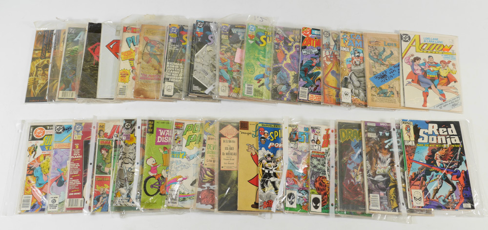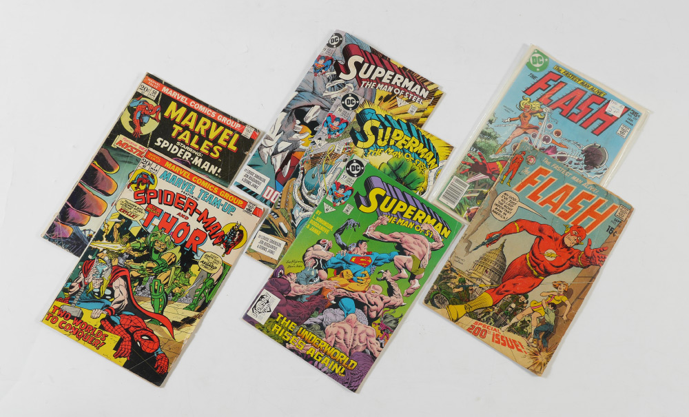 COLLECTION OF BRONZE AND MODERN AGE COMIC BOOKS: Approx. 162 books consisting primarily of DC Superman titles, EC vintage horror reprints and other single titles. Highlights include Green Lantern co-starring Green Arrow #76, Superman Man of Steel #17,18,19 (first appearances of Doomsday), original series Flash 200, and more.