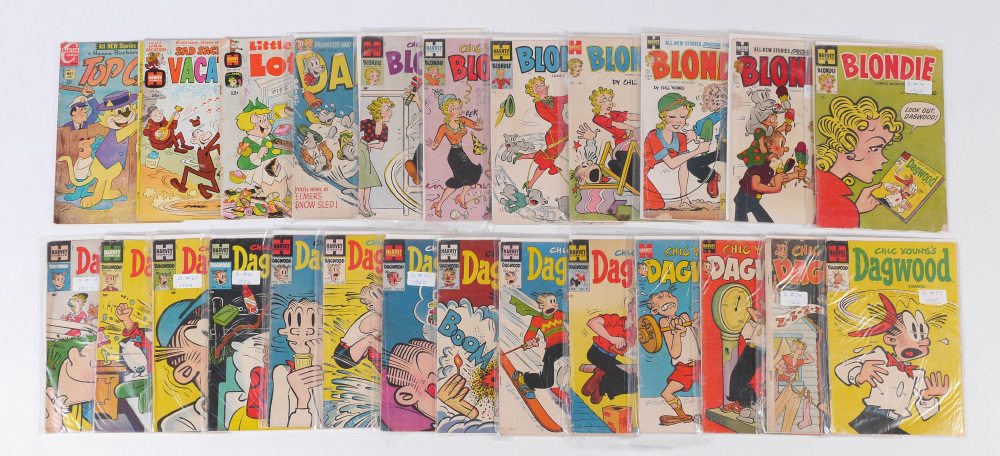 COLLECTION OF HARVEY GOLDEN AGE COMICS: Approx. 21 Harvey comics, titles to include Dagwood, Blondie, and a Daisy and her Pups. Early 1950's to 1956.