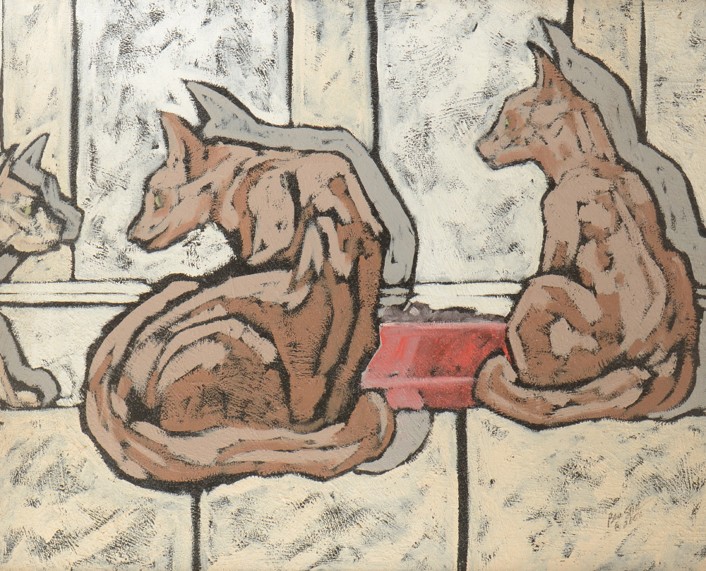 STILL, Ben, (American, 20th-21st Century): `''The Intruder'', Acrylic and Sand/Canvas, 24'' x 30'', signed lower right, dated 2002, signed, titled and dated on stretcher verso, framed by the artist, 28.5'' x 24.5''.