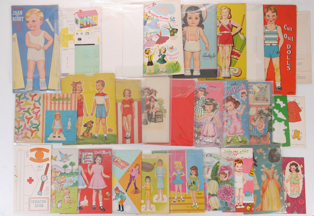 COLLECTION OF 32 VINTAGE PAPER DOLL BOOKS: Approx. 32 assorted paper dolls books with assorted themes. Publishers to include Saalfield, Whitman, Lowe, Merrill and more.