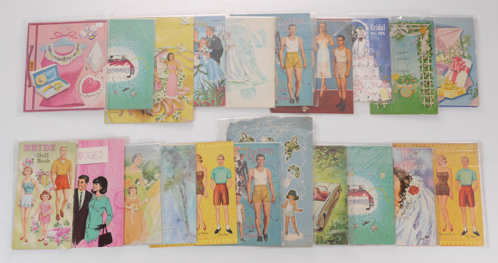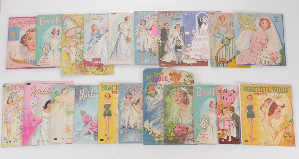 COLLECTION OF 21 VINTAGE WEDDING PAPER DOLL BOOKS: 15 assorted paper dolls books with wedding bride and bridal party themes. Publishers include Whitman, Merrill, Saalfield, Lowe and more.