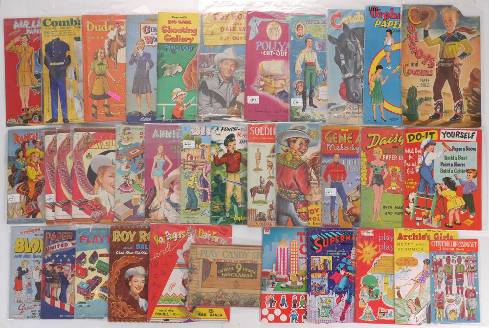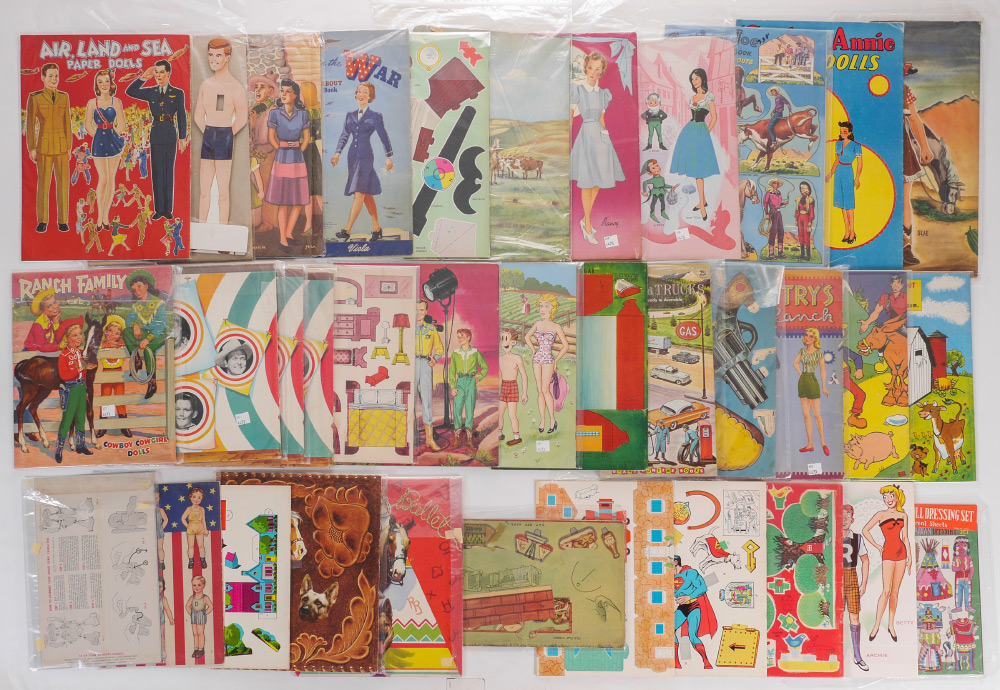 COLLECTION OF 35 VINTAGE BOY THEMES PAPER DOLL BOOKS: 35 assorted paper dolls books with various themes to include cowboys, military, play sets, comics and more. Publishers include Whitman, Merrill, Saalfield, and more.