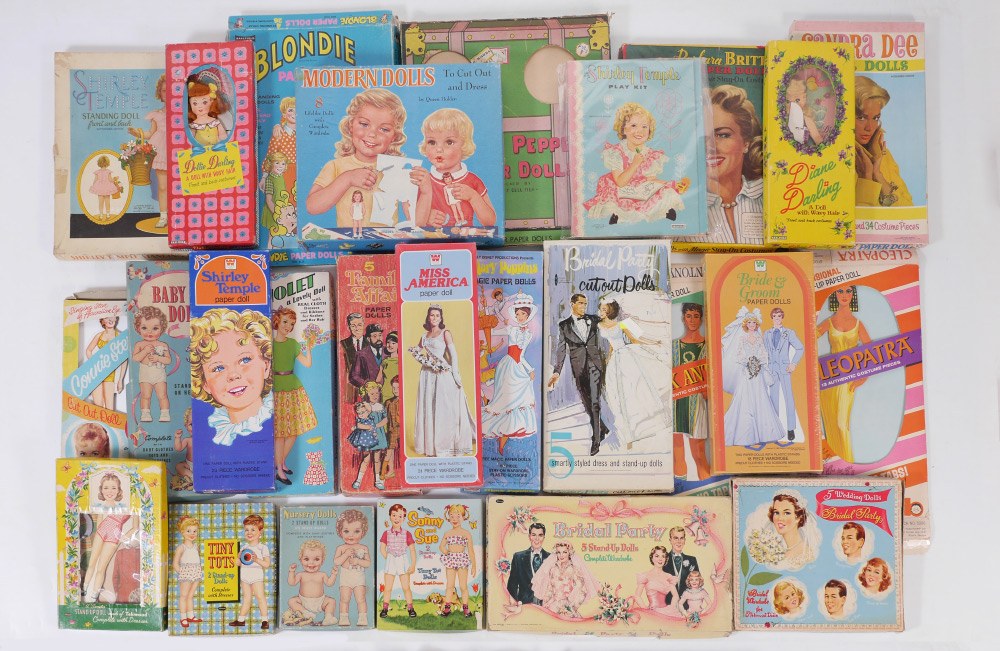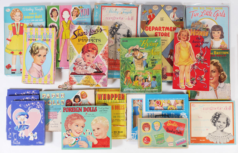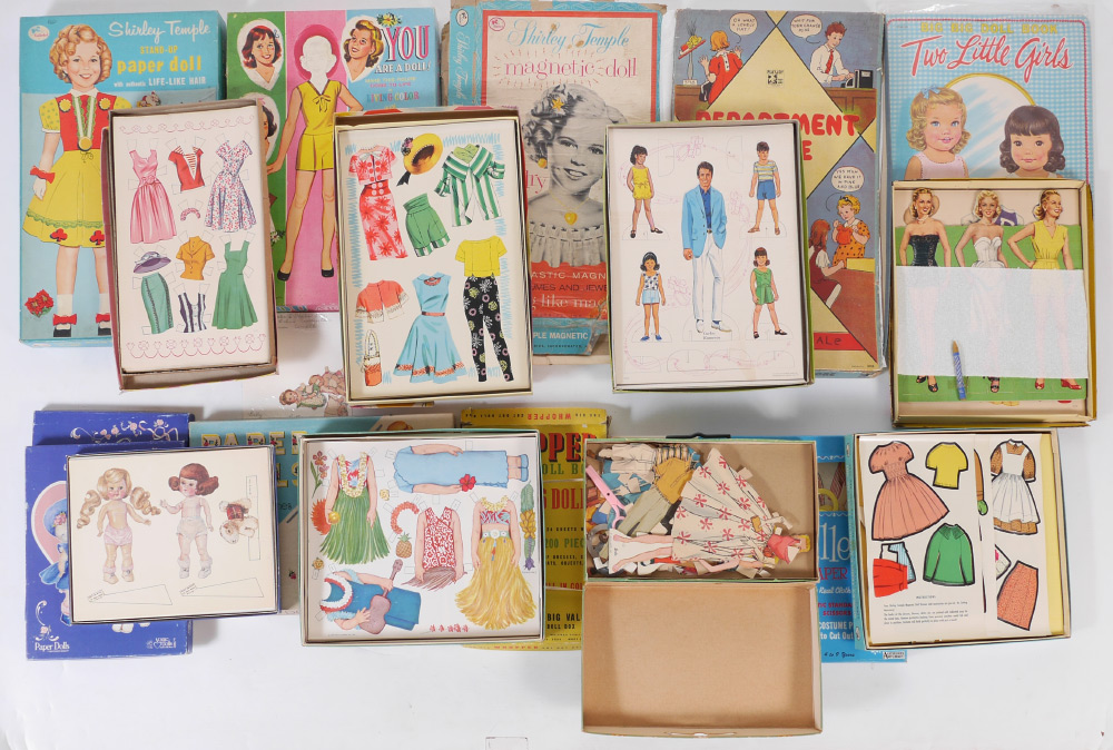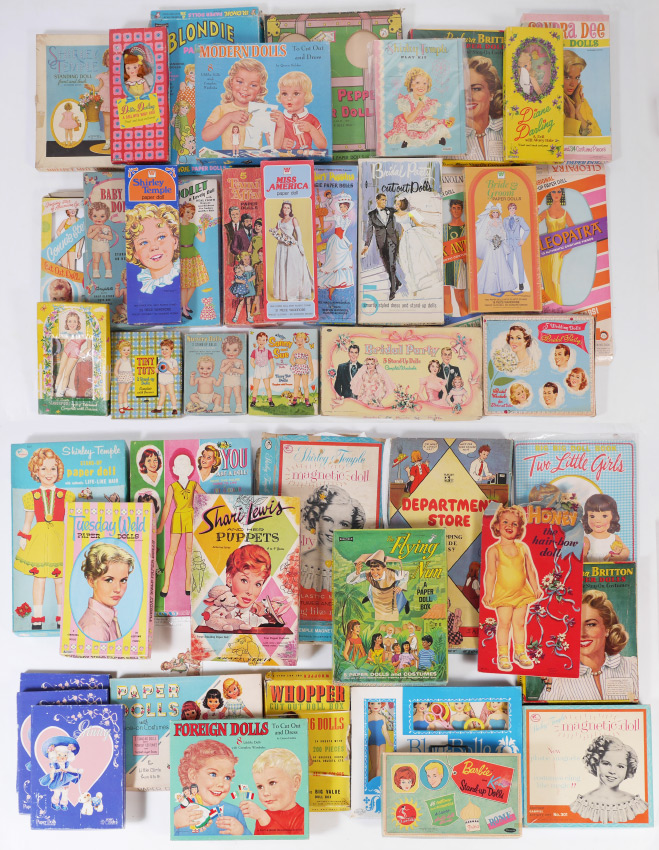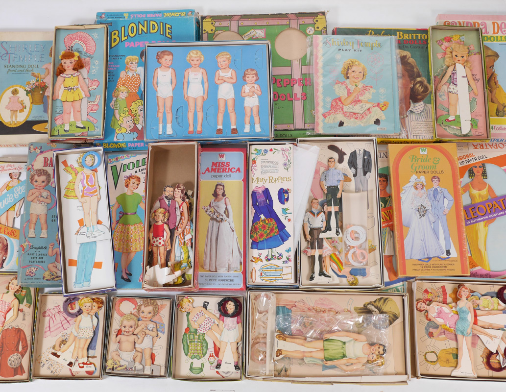 COLLECTION OF 32 VINTAGE PAPER DOLL BOXED SETS: 32 assorted paper dolls and play sets with original boxes. Various makers.