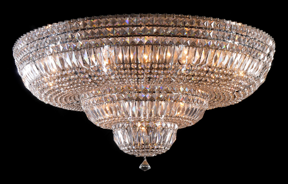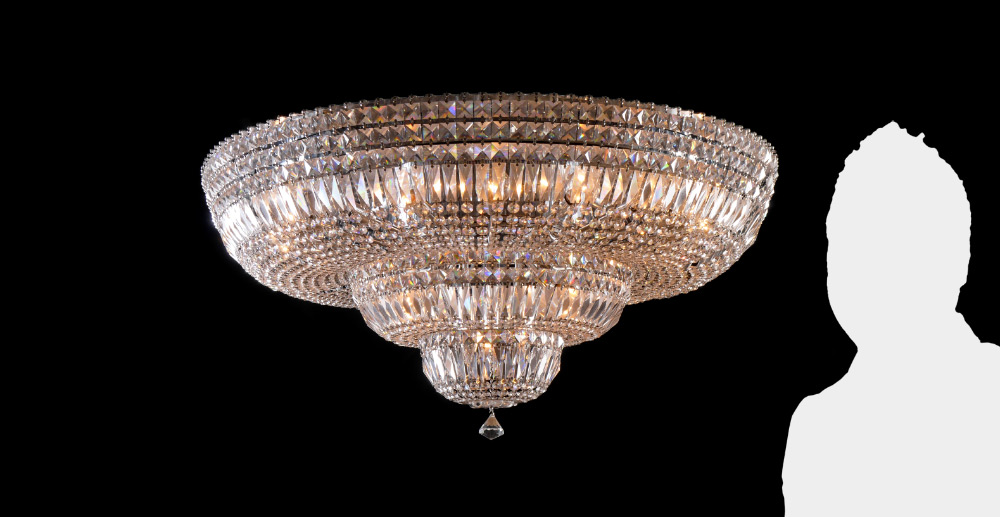 LARGE CHROME & CRYSTAL MEDALLION CHANDELIER: Circular form with 3 levels of crystal garland, 24 lights, later 20th century production. Approx. 13'' h. x 36'' dia.