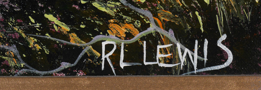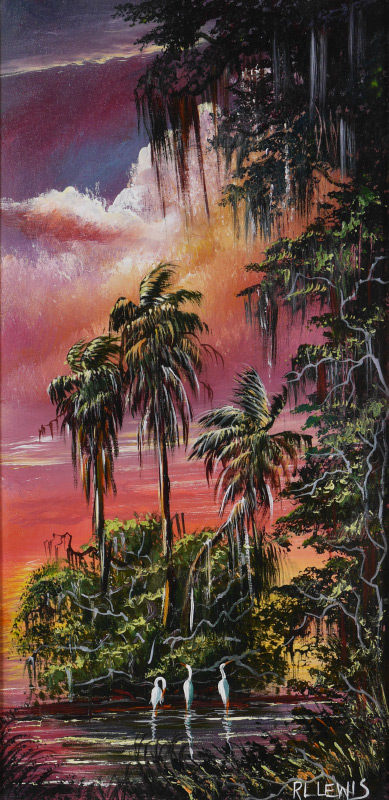LEWIS, Robert L., (American, 20th Century): Vibrant Florida Highwaymen Backwater Scene, Oil/Canvas, signed lower right, 24'' x 12'', framed 29'' x 17 1/4''.