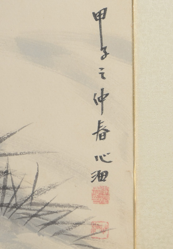 CONDITION: Water seepage in the lower margin not effecting painting only the frame's silk mat.
