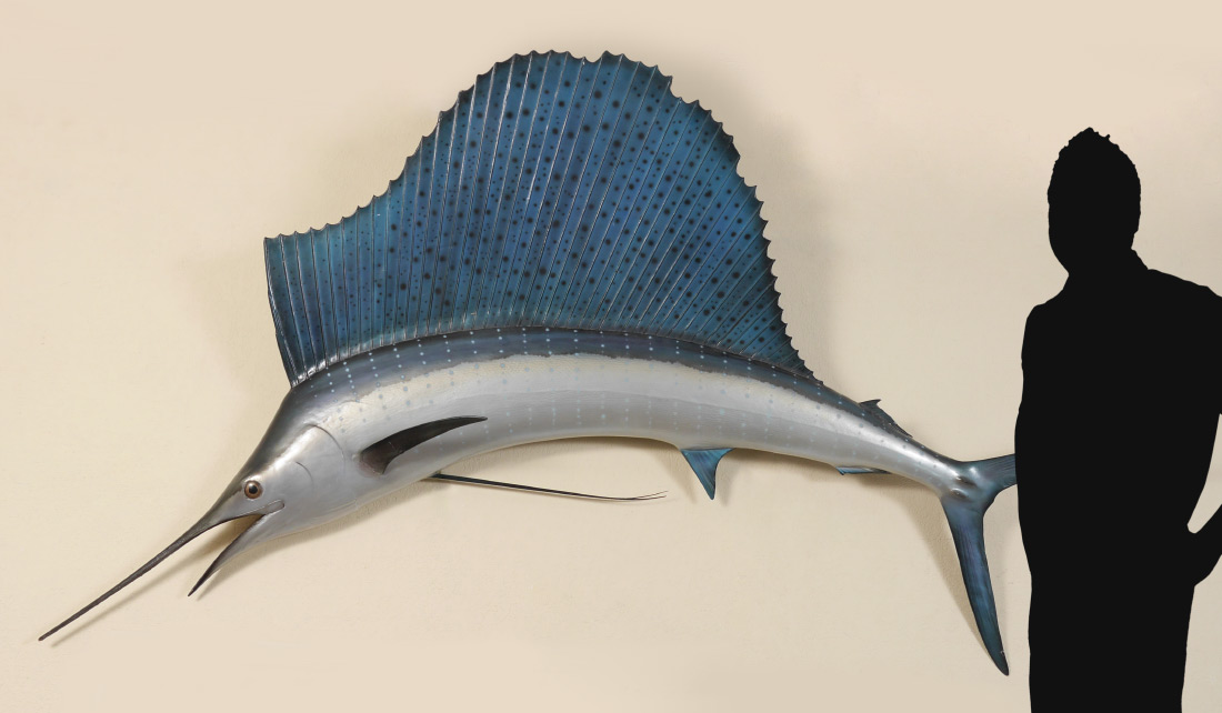 TAXIDERMY SAILFISH MOUNT: Approx. 48'' h. x 85'' long x 9''.