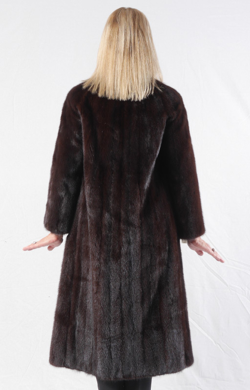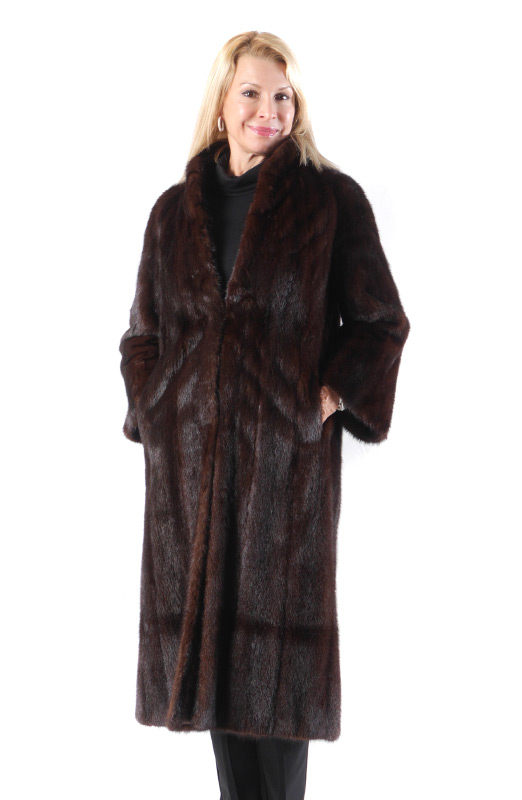 FULL LENGTH DARK MINK FUR COAT: J.P Allen Atlanta label. Standup collar and bell sleeves. Size small to medium measures approx. 45'' collar to collar, 19'' across shoulders and 20'' shoulder to cuff.