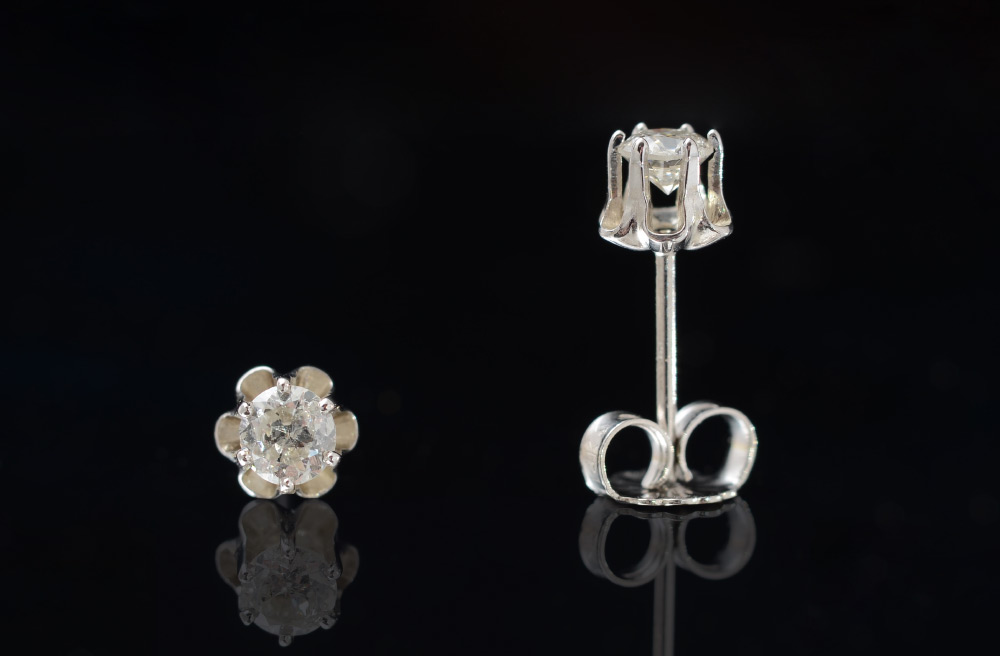 DIAMOND SOLITAIRE BUTTERCUP SET DIAMOND STUD EARRINGS: 14K white gold stud earrings with 2 diamonds totaling approx. .40 Ct., of SI-2 clarity and H color. Post and nut closure.