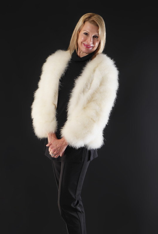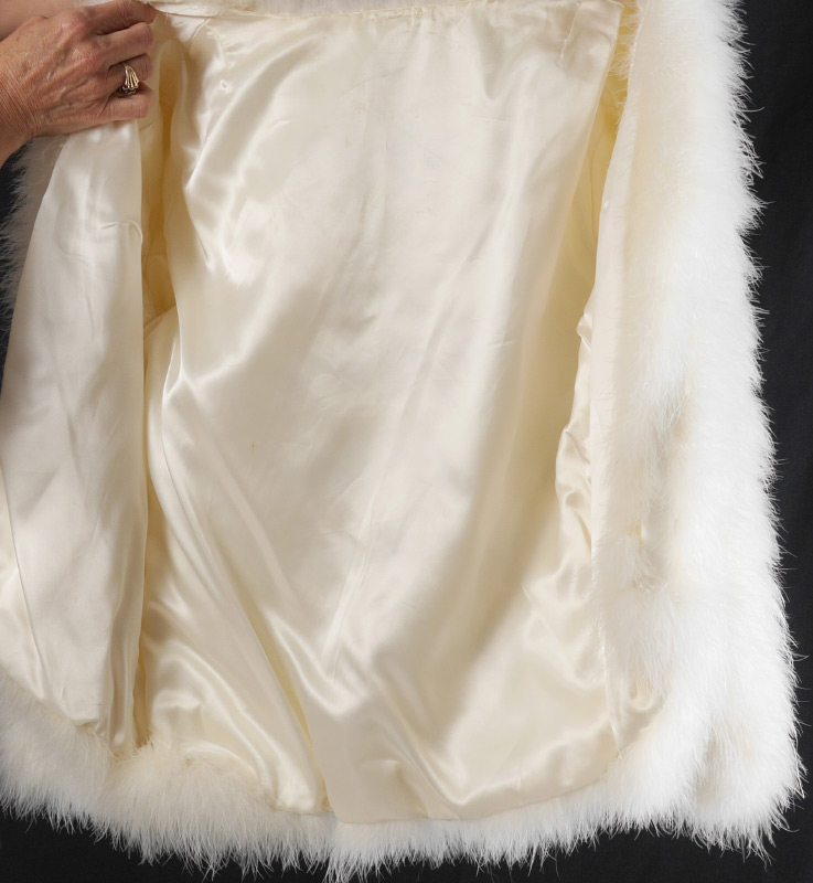 OSTRICH FEATHER JACKET: Exotic white feathers, fully lined, small size.