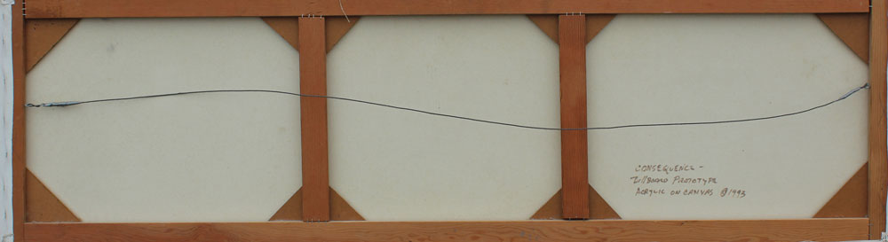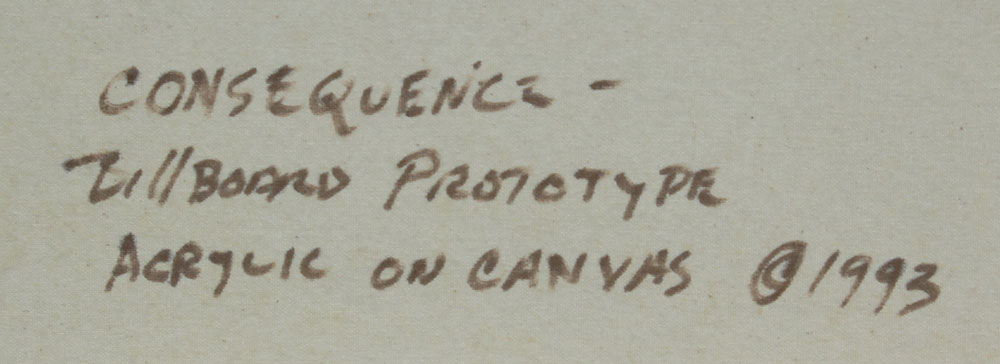 RODGERS, Lance, (American, 20th C.): ''Consequence'', Acrylic/Canvas, Billboard Prototype, 24'' x 84'', signed lower left, dated '93, signed titled and dated verso, thin edged wooden frame, 24 1/2'' x 84 1/2''.