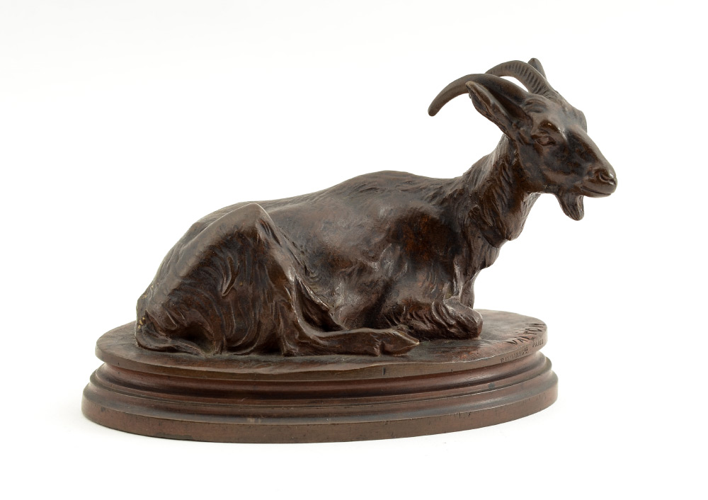 VALTON, Charles, (French, 1851-1918): Billy Goat at Rest, Bronze, 3.75'' x 5.25'' x 3'', incised signature.