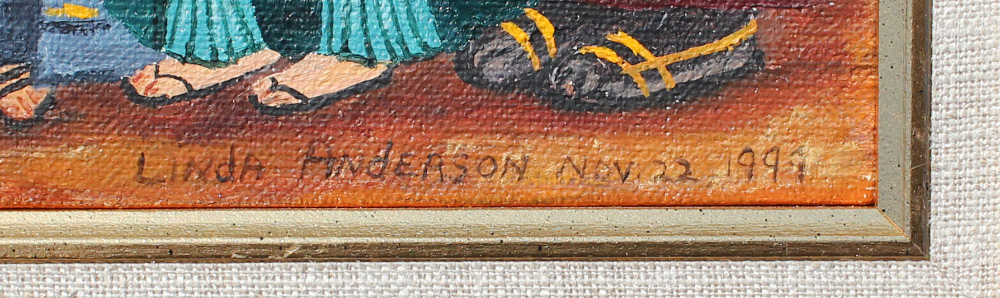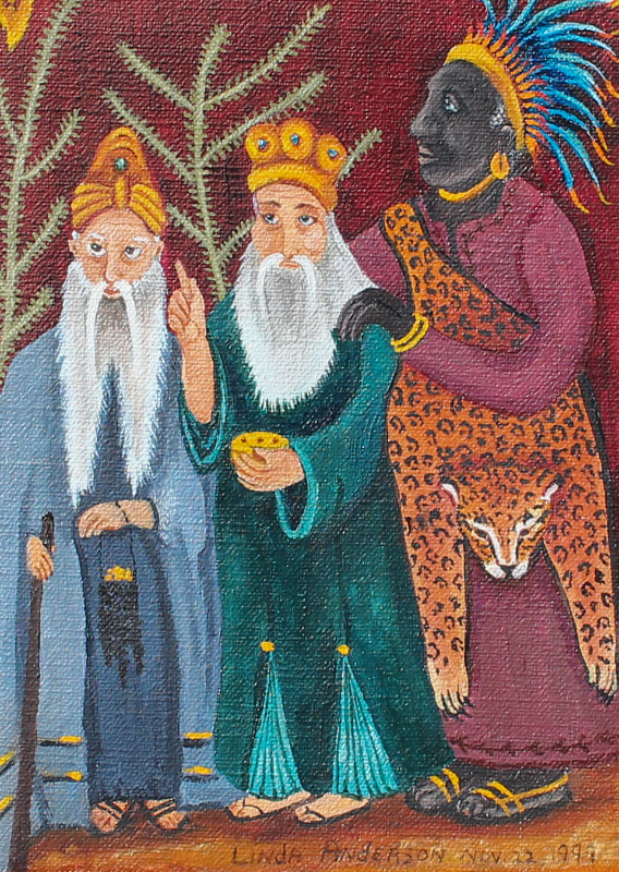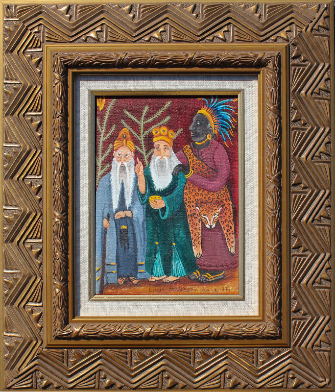 ANDERSON, Linda, (American, 20th century): 2 White Haired Bearded Men and 1 African Man, Oil/Canvas, 7.5'' x 5.5'', signed lower right and dated 1999, framed 15'' x 12.75''.