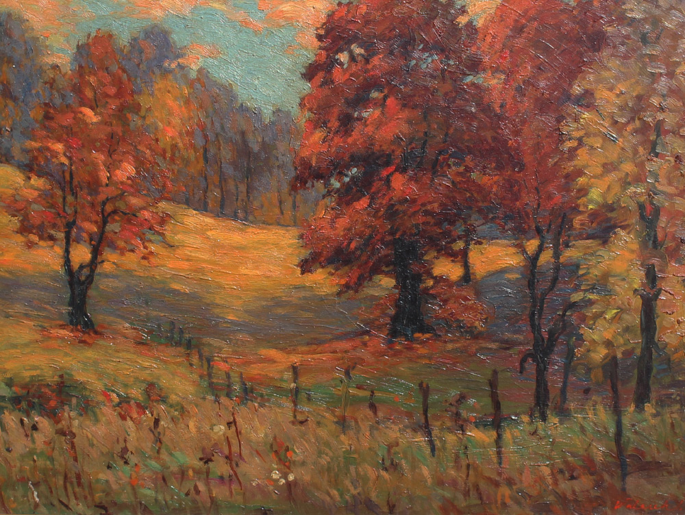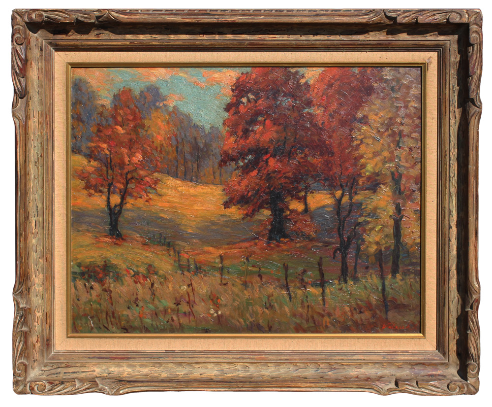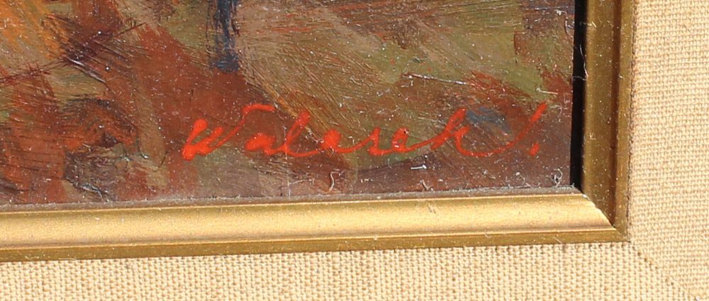 AUTUMNAL FOREST PAINTING SIGNED WALASEK: 17 7/8'' x 23 5/8'', signed lower right, encased in original carved frame, 24.5'' x 30''.