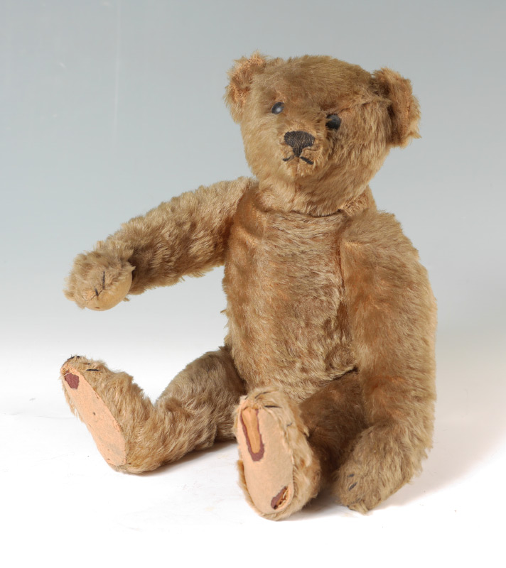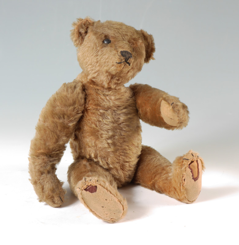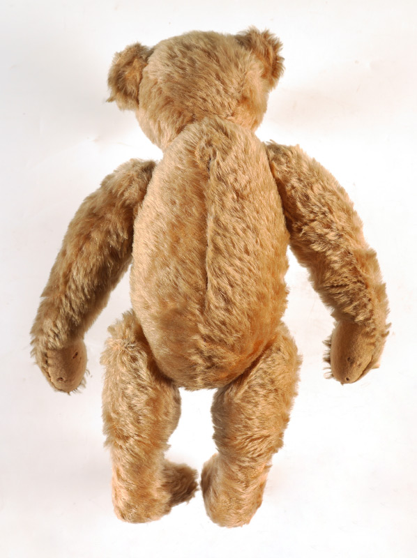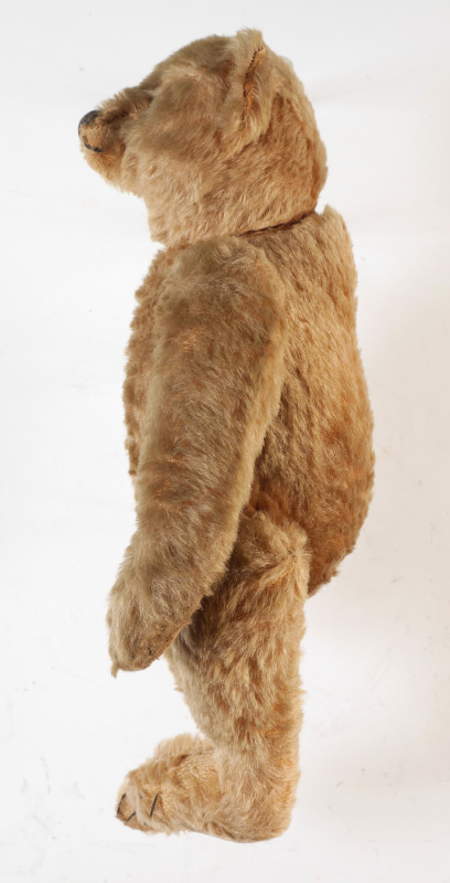 EARLY STEIFF MOHAIR BEAR: 16'' tall bear, jointed at the neck, arms and legs, black button eyes, blank iron button in his ear. Ca. 1904/1905.