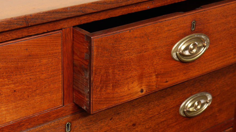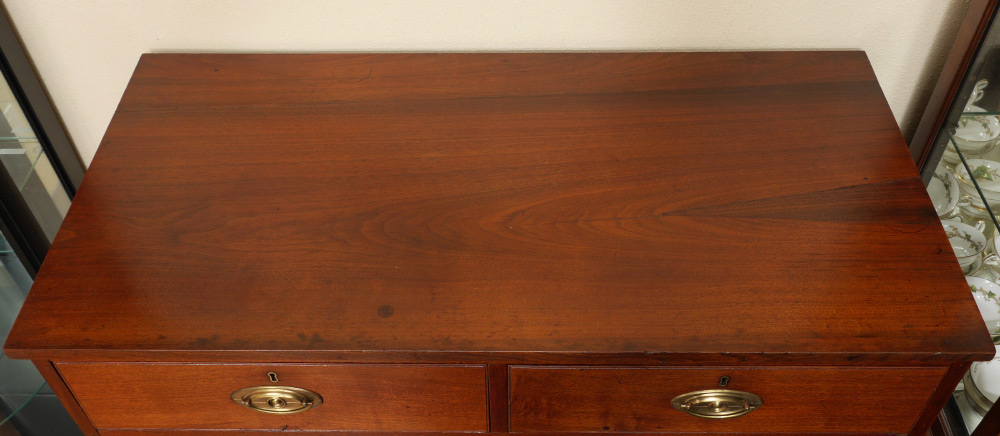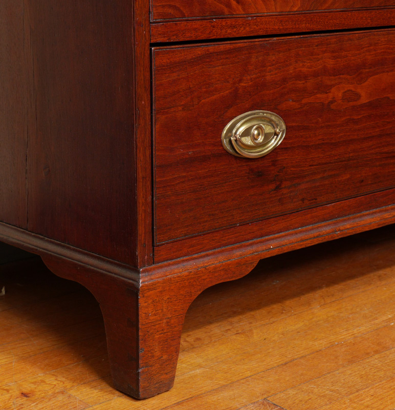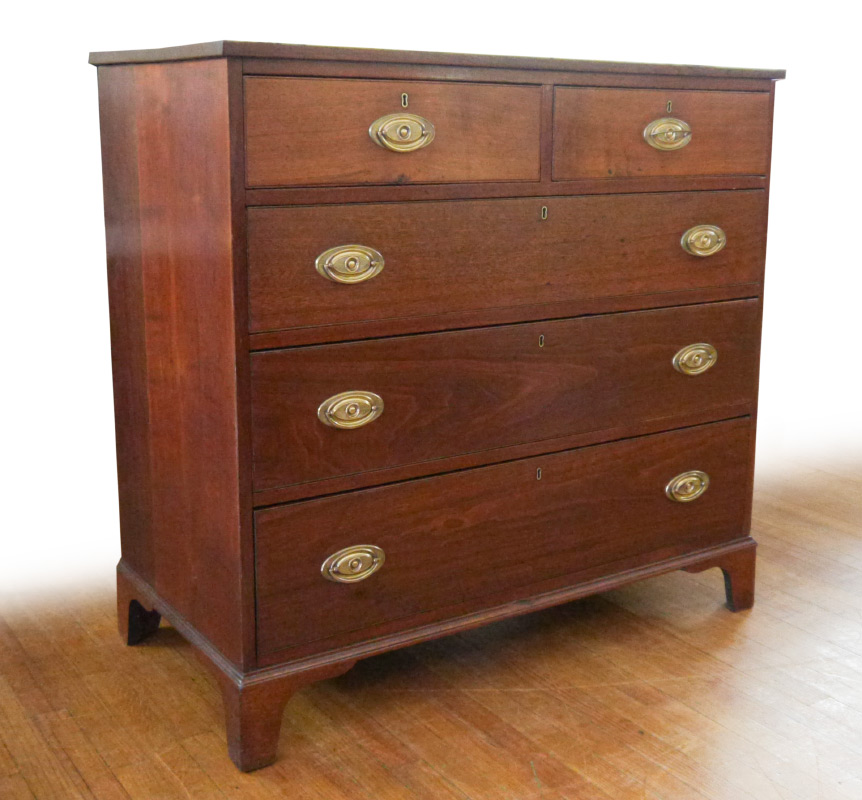 19TH CENTURY WALNUT CHEST OF DRAWERS: 2 half drawers over 3 full length drawers, bracket feet, brass pulls. Overall 41 1/2'' h. x 43 3/4'' x 21 3/4''.