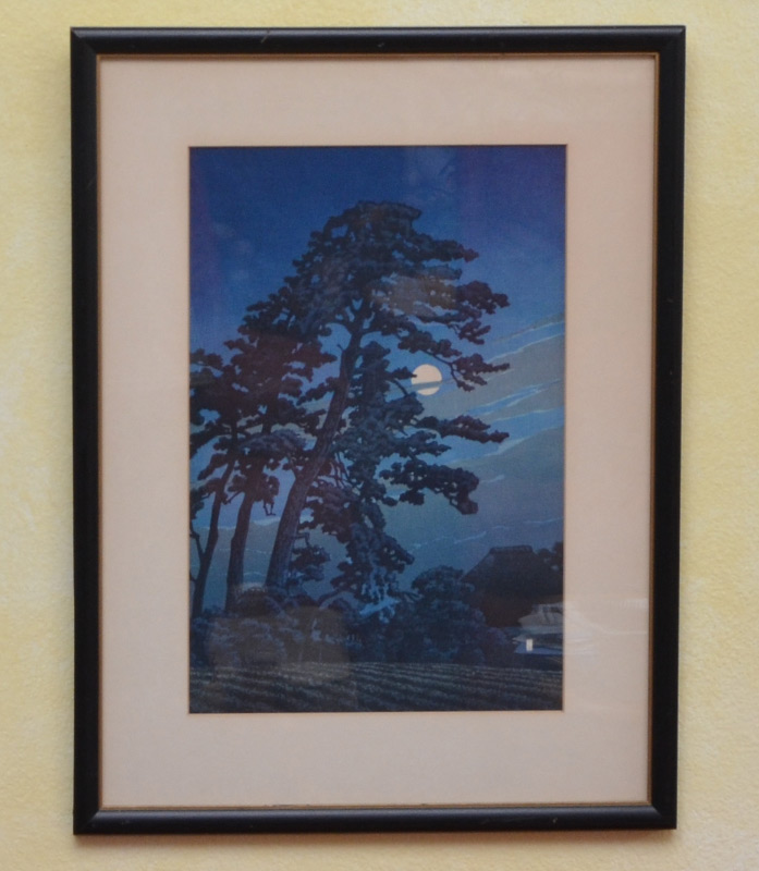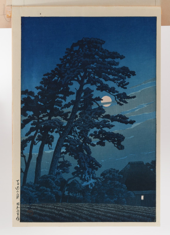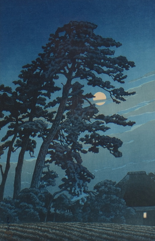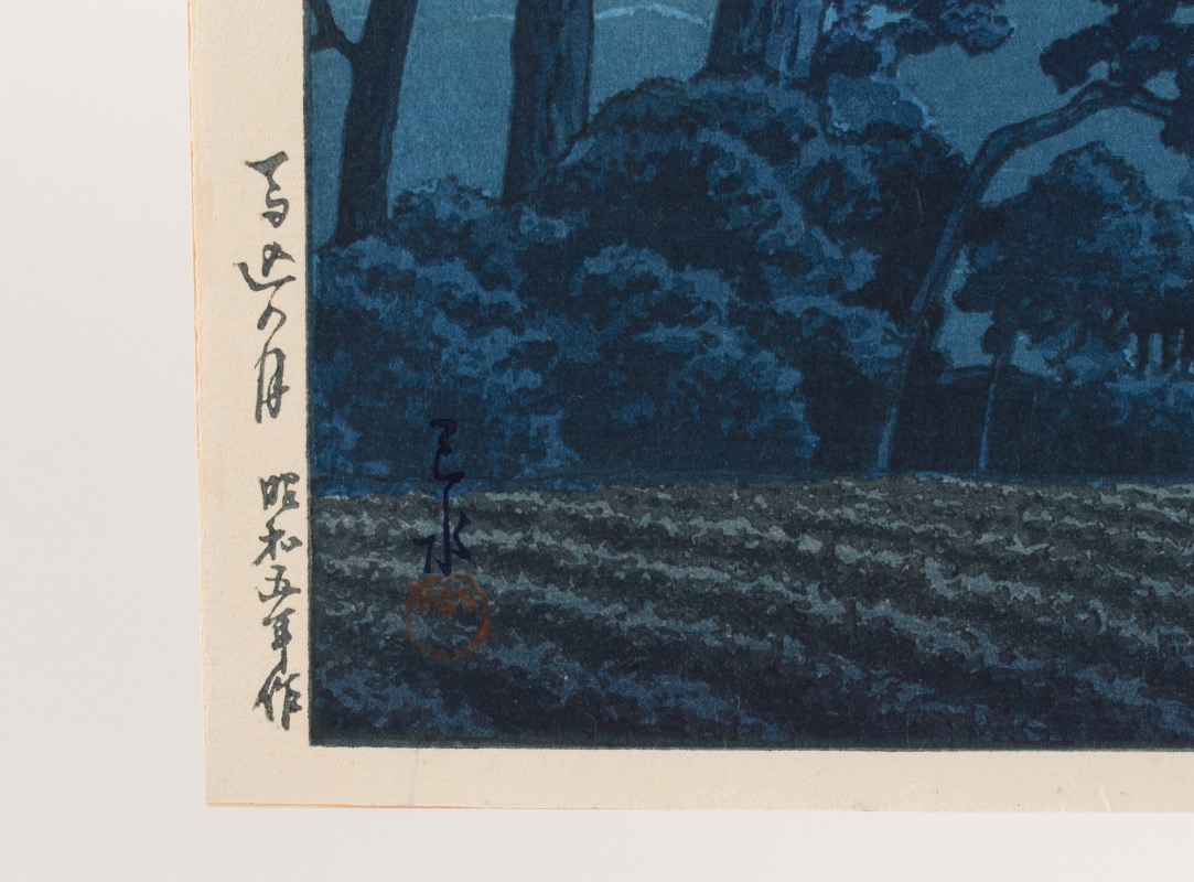 HASUI, Kawase, (Japanese, 1883-1957): ''Moon at Magome'', Woodblock Print, 15.5'' x 10.5'' with margins, seal in lower left margin, framed, 20'' x 15''. Hasui created more than 600 landscape scenes in his lifetime, most of which were printed by Watanabe. He was honored with the title Living National Treasure.
