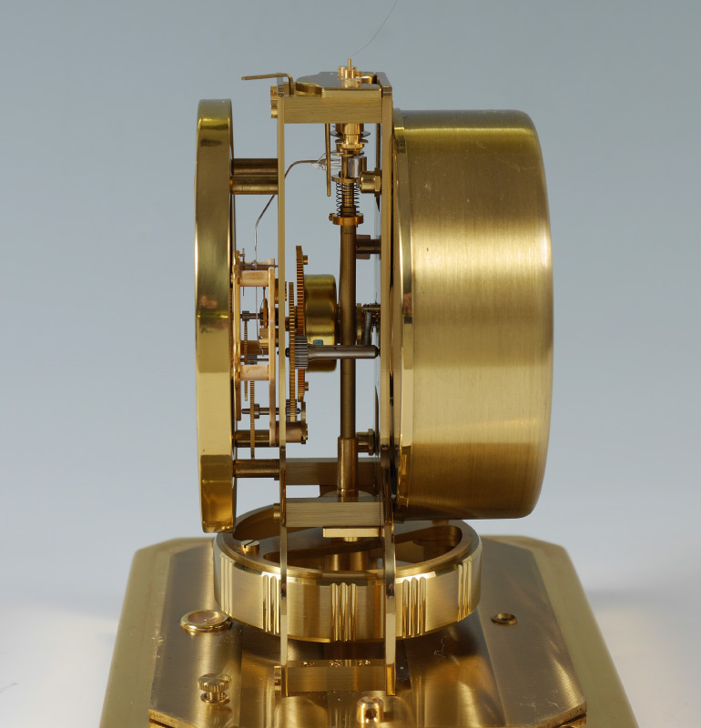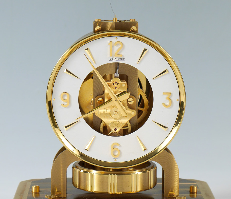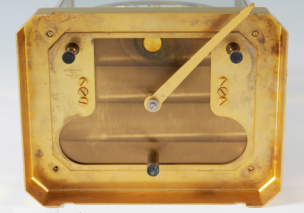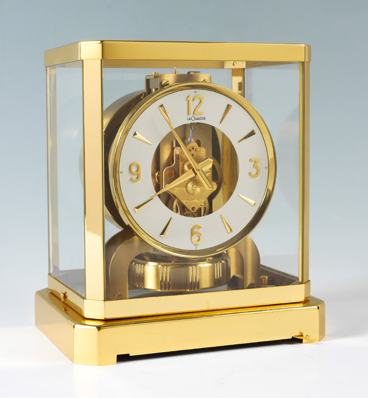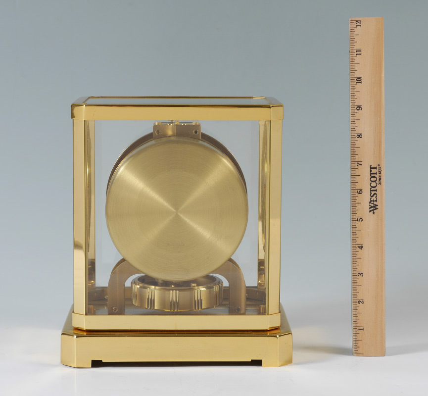 1960'S LECOULTRE ATMOS CLOCK: Mid 1960's production, serial number 201332, brass frame and base, dial with Arabic numerals and has marks. Overall measures 9 1/4'' h. x 8 1/4'' x 6 1/4''.