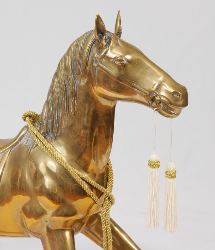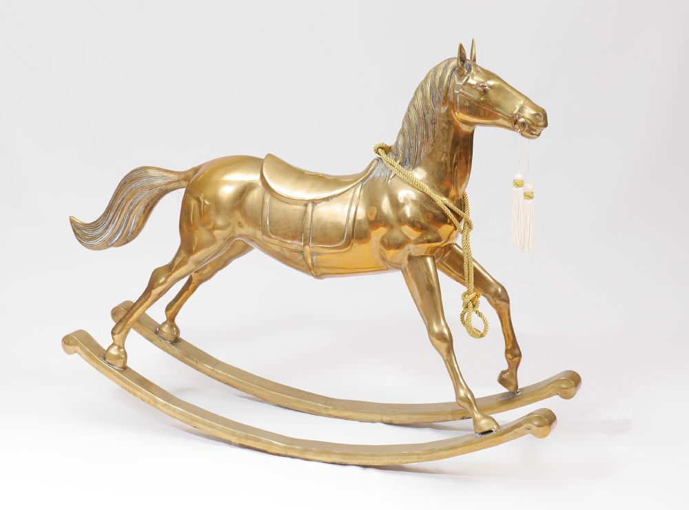 LARGE BRASS ROCKING HORSE: Cast brass figure of a rocking horse, mid 20th century production, overall measures 35 1/4'' h. x 46'' x 12''.