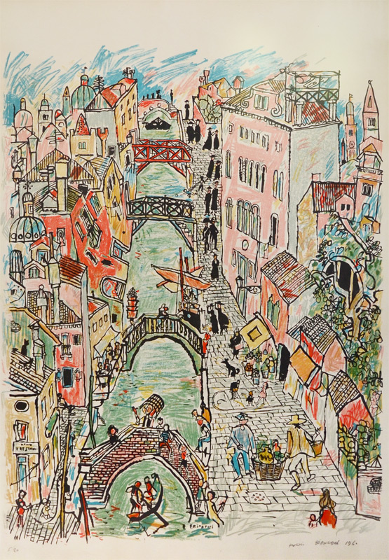 BIANCONI, Fulvio, (Italian, 1915-1996): View of Venice, Color Lithograph, Sight size 39 1/2'' x 29'', pencil signed lower right, dated 1960, numbered lower left 5/60, custom frame 43'' x 33''.