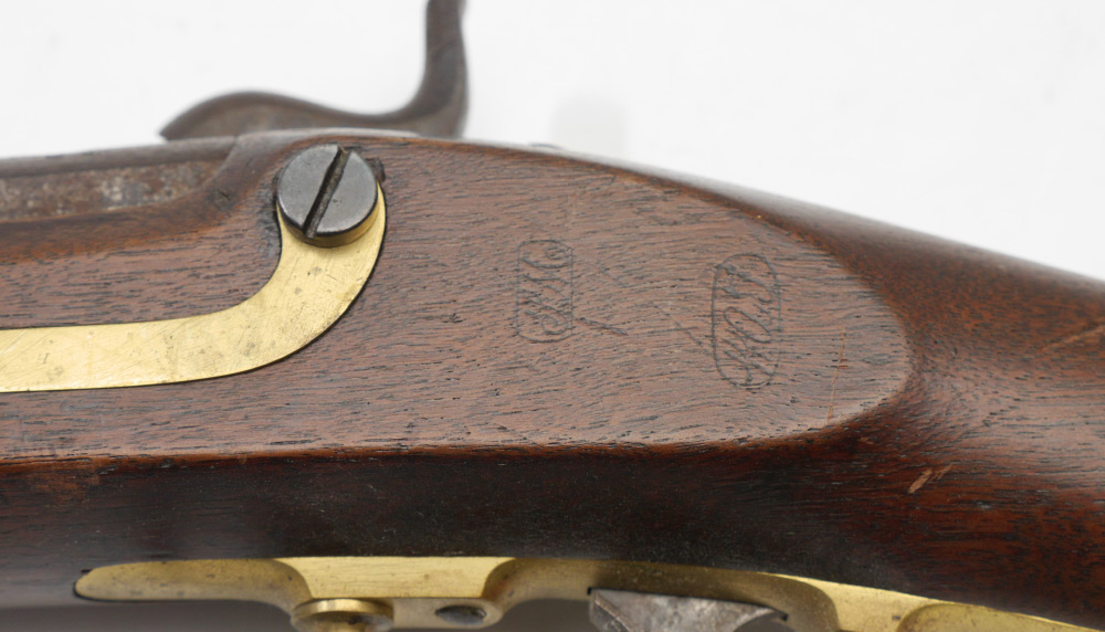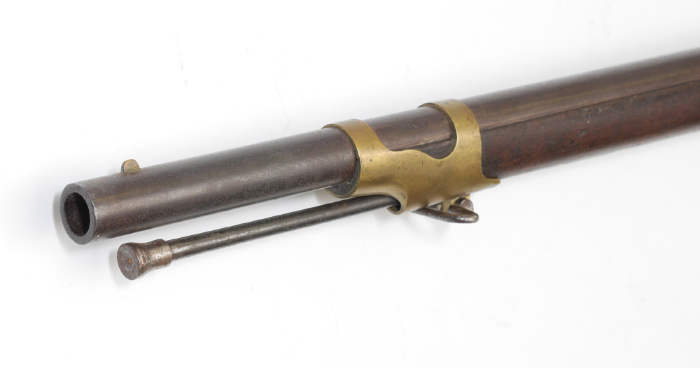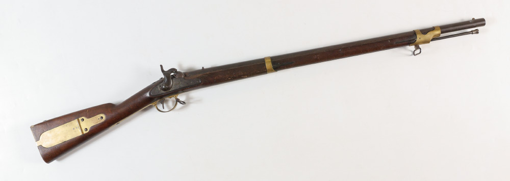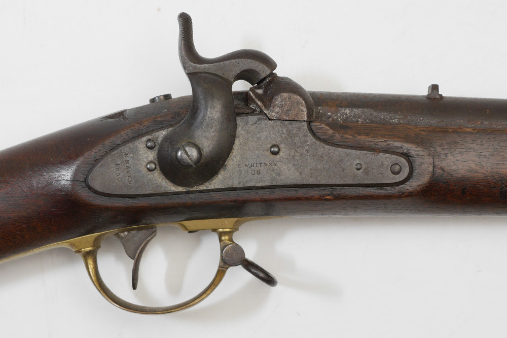 US PERCUSSION MODEL 1841 WHITNEY ''MISSISSIPPI'' RIFLE: .54 caliber smoothbore 33'' barrel, lockplate stamped with E. Whitney, US and N. Haven 1850. Walnut full stock with double inspector cartouche, brass butt plate stamp with US and traces of inspector marks, brass patchbox and furniture. Original rod, overall measures 49'' long. Action currently working.